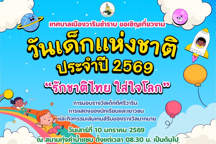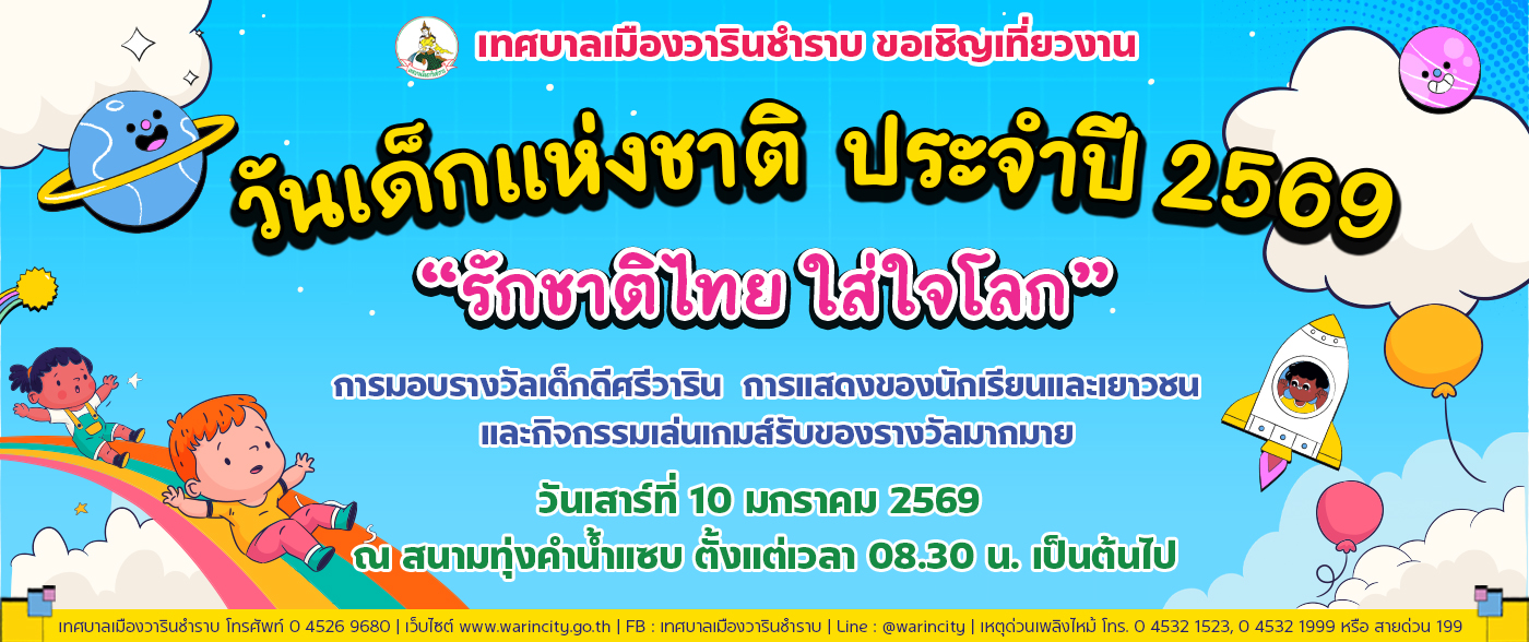 เทศบาลเมืองวารินชำราบ ขอเชิญเที่ยวงานวันเด็กแห่งชาติ ประจำปี 2569