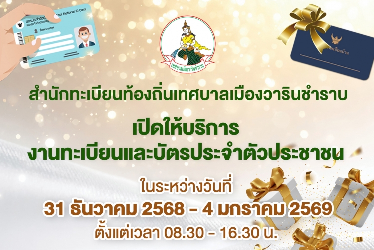 สำนักทะเบียนท้องถิ่นเทศบาลเมืองวารินชำราบ เปิดให้บริการช่วงเทศกาลปีใหม่ 2569