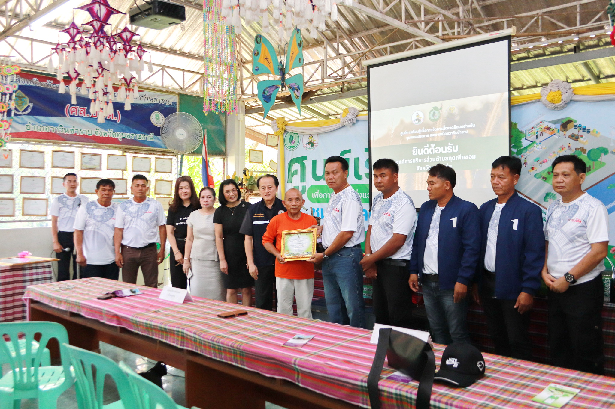 วันที่ 26 มีนาคม 2569 เวลา 09.00 น ณ ศูนย์เรียนรู้เพื่อการจัดการสิ่งแวดล้อมอย่างยั่งยืน ชุมชนชลประทาน นายจีระชัย ไกรกังวาร นายกเทศมนตรี ได้มอบหมายให้ นายณรงชัย ประสิทธิ์ภูริปรีชา รองนายกเทศมนตรี พร้อมด้วยนางรุ่งนภา ทับหนองฮี รองปลัดเทศบาล รักษาราชการแทนปลัดเทศบาล, หัวหน้าส่วนการงานเทศบาลเมืองวารินชำราบ และคณะทำงานศูนย์การเรียนรู้ฯ ชุมชนชลประทาน ให้การต้อนรับคณะผู้บริหาร หัวหน้าส่วนราชการ และพนักงาน จากองค์การบริหารส่วนตำบลกุดเพียขอม อำเภอชนบท จังหวัดขอนแก่น นำโดยนายพีระพล นาที นายกองค์การบริหารส่วนตำบลกุดเพียขอม ในการศึกษาดูงานด้านการบริหารจัดการขยะภายในชุมชนของชุมชนชลประทาน ซึ่งเป็นชุมชนต้นแบบในเขตเทศบาลเมืองวารินชำราบที่ประสบความสำเร็จในการลดปริมาณขยะภายในชุมชน ภายใต้การทำกิจกรรมโครงการชุมชนปลอดขยะ Zero Waste ด้วยการนำขยะมารีไซเคิลผลิตเป็นสิ่งของเครื่องใช้ต่างๆ อาทิ ถังขยะลดโลกร้อน,ไม้กวาดจากขวดพลาสติก, เสื่อจากถุงพลาสติก, ผ้ากันเปื้อนจากป้ายไวนิล, เตาชีวมวลจากหม้อหุงข้าวที่ไม่ใช้แล้ว เป็นต้น