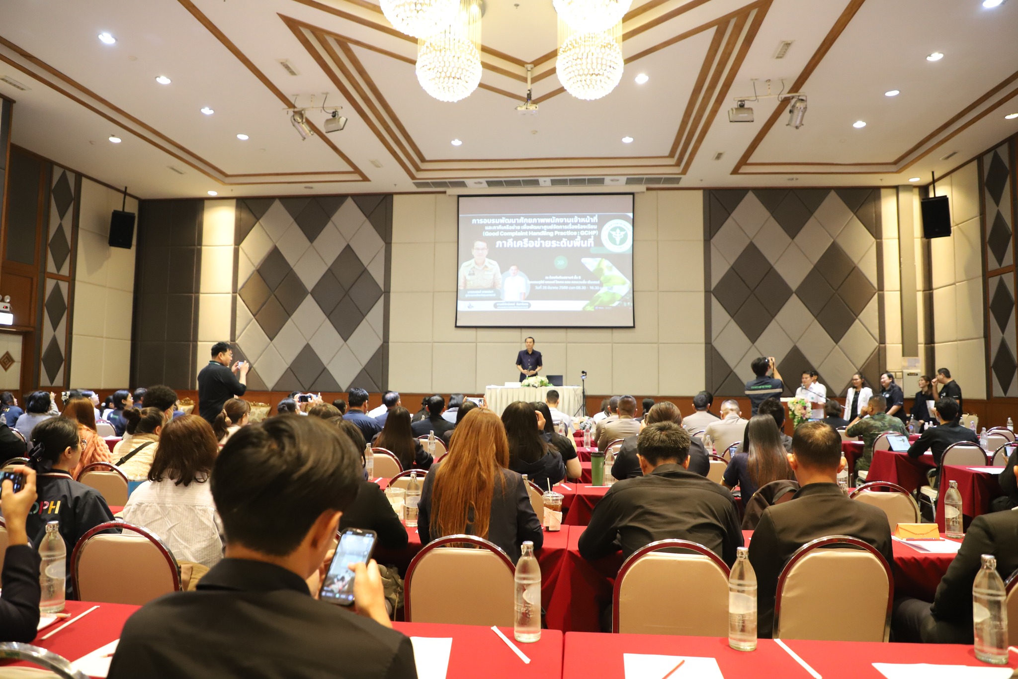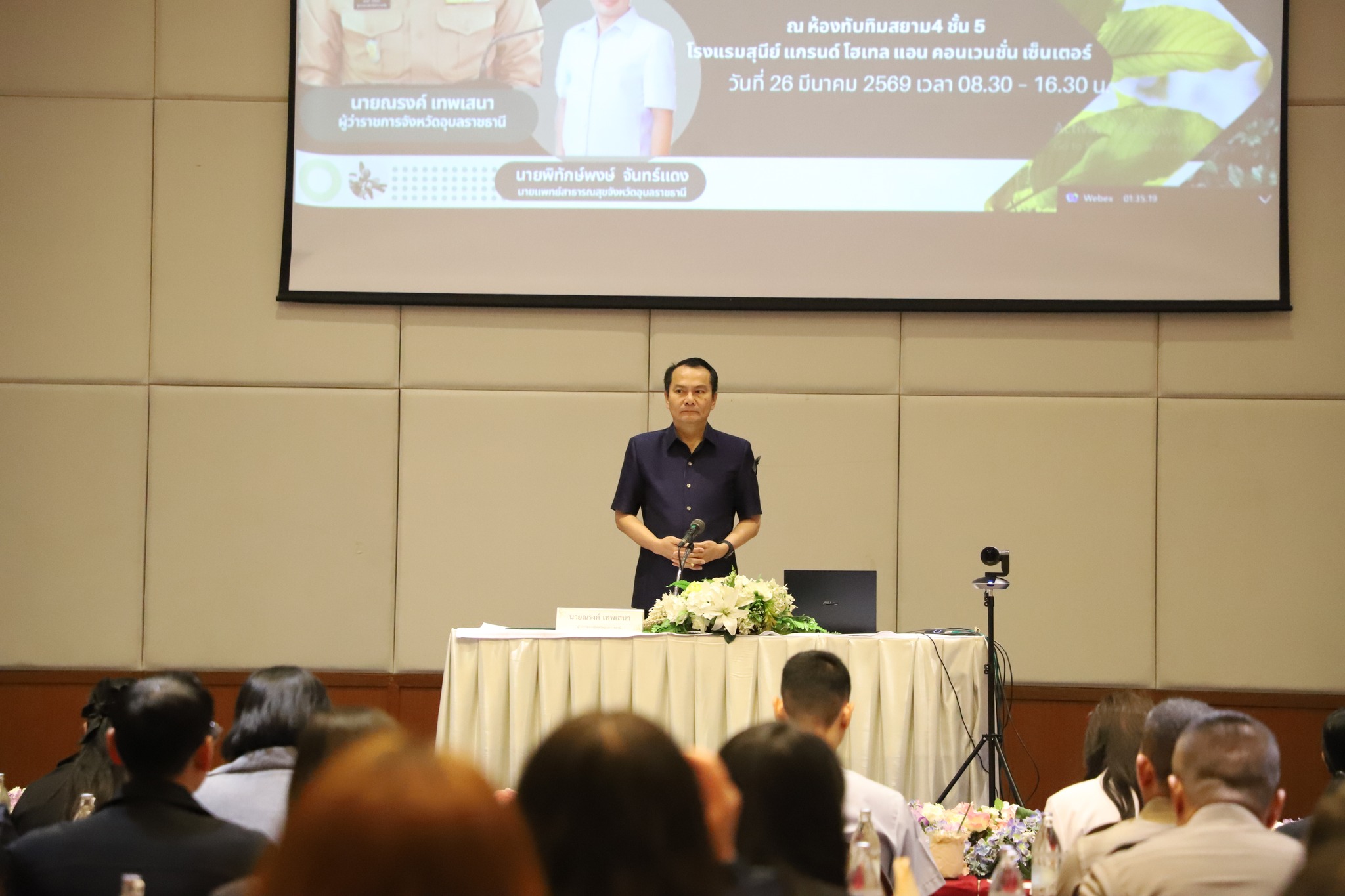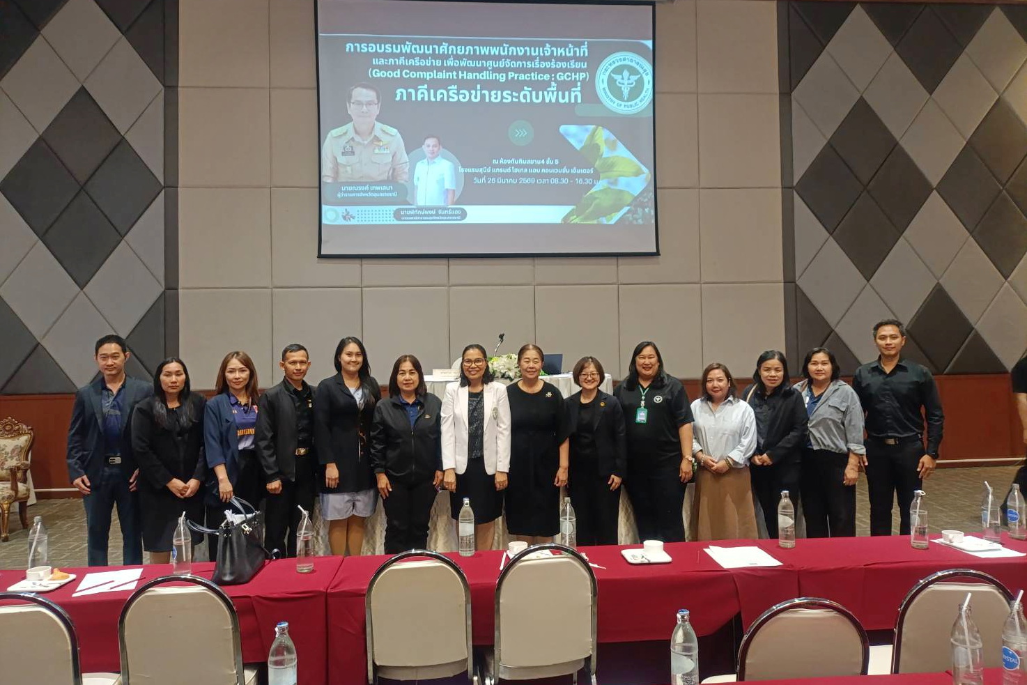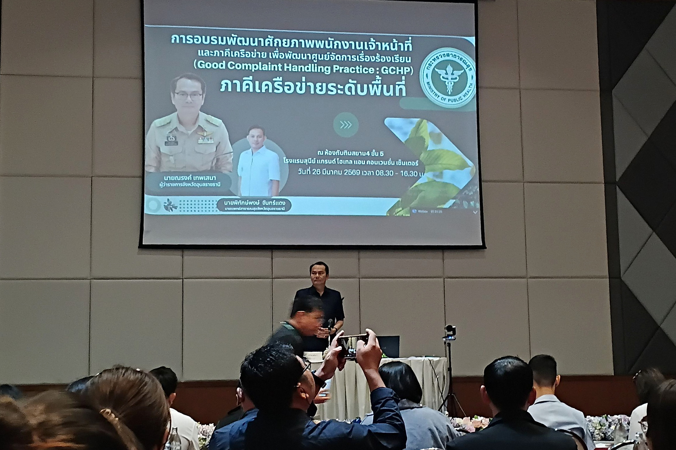 วันที่ 26 มีนาคม 2569 นางพฤกษา ตังกิจวนิชกุล ผู้อำนวยการกองสาธารณสุขและสิ่งแวดล้อม พร้อมก้วยเจ้าหน้าที่กองสาธารณสุขและสิ่งแวดล้อม เจ้าหน้าที่นิติกร และเจ้าหน้าที่เทศกิจ เทศบาลเมืองวารินชำราบ ได้เข้าร่วมการอบรม “พัฒนาศักยภาพพนักงานเจ้าหน้าที่และภาคีเครือข่าย เพื่อพัฒนาศูนย์จัดการเรื่องร้องเรียน (Good Complaint Handling Practice : GCHP)” ระดับอำเภอ (25 อำเภอ) และภาคีเครือข่ายระดับพื้นที่ ณ ห้องประชุมโรงแรมสุนีย์แกรนด์ จังหวัดอุบลราชธานี โดยมี นายณรงค์ เทพเสนา ผู้ว่าราชการจังหวัดอุบลราชธานี เป็นประธานในพิธีเปิด ซึ่งการอบรมในครั้งนี้จัดโดย สำนักงานสาธารณสุขจังหวัดอุบลราชธานี เพื่อสร้างความรู้ความเข้าใจและกำหนดแนวทางปฏิบัติร่วมกันใน 3 ประเด็นสำคัญ ได้แก่ การควบคุมและบังคับใช้กฎหมายเกี่ยวกับพืชกระท่อม แนวทางจัดการปัญหาด้านยาและการใช้ยาในทางที่ผิด รวมถึงการบูรณาการทำงานร่วมกันของหน่วยงานในด้านการเฝ้าระวัง การสืบสวน การตรวจสอบ และการเชื่อมโยงข้อมูล