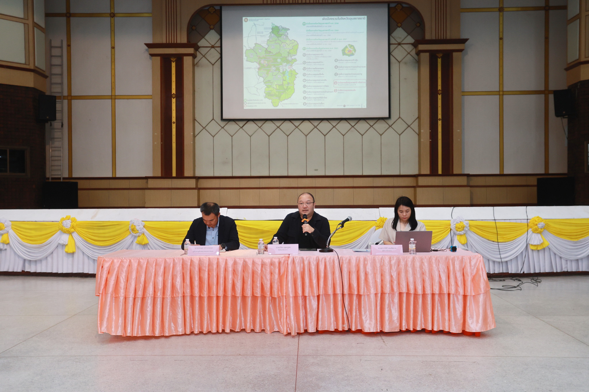 วันที่ 2 เมษายน 2569 เวลา 09.00 น. ณ หอประชุมประชาวาริน นายจีระชัย ไกรกังวาร นายกเทศมนตรีเมืองวารินชำราบ พร้อมด้วยนายณรงชัย ประสิทธิ์ภูริปรีชา รองนายกเทศมนตรี พร้อมด้วย นายสัมพันธ์ ศิริปักมานนท์ ผู้อำนวยการกองช่าง และเจ้าหน้าที่เทศบาลเมืองวารินชำราบ ร่วมการประชุมรับฟังความคิดเห็นของประชาชน ก่อนการจัดทำร่างผังเมืองรวม โครงการวางและจัดทำผังเมืองรวมเมืองอุบลราชธานี - วารินชำราบ จังหวัดอุบลราชธานี เพื่อเปิดโอกาสให้ประชาชนและทุกภาคส่วน ได้มีส่วนร่วมในการแสดงความคิดเห็นต่อการกำหนดแนวทางการพัฒนาเมืองในอนาคต โดยผังเมืองรวมดังกล่าวจะเป็นกรอบนโยบาย มาตรการ และแผนผัง ที่จะประกาศใช้เป็นกฎหมาย เพื่อควบคุมและส่งเสริมการพัฒนาพื้นที่ ทั้งในด้านการใช้ประโยชน์ที่ดิน การคมนาคมขนส่ง ระบบสาธารณูปโภค สาธารณูปการ และการบริการสาธารณะ