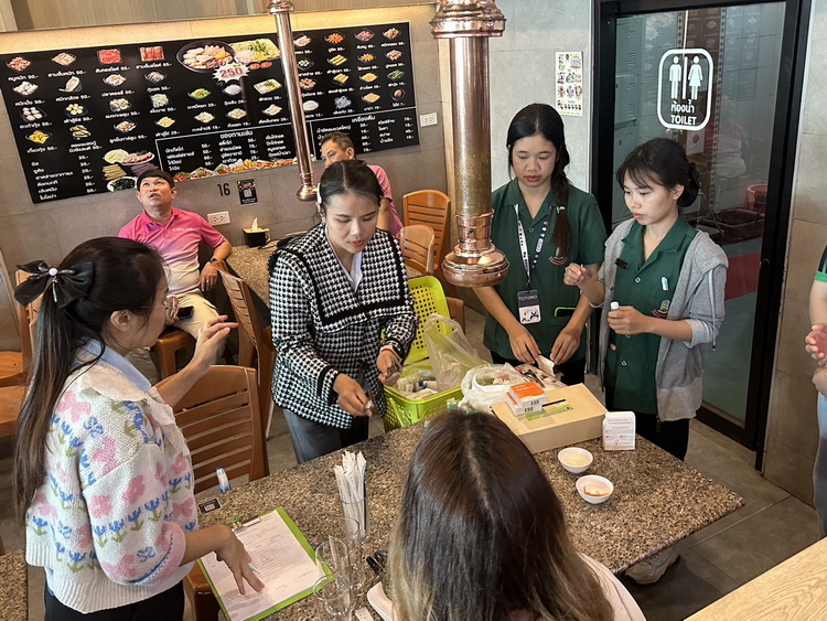 เมื่อวันที่ 24 ธันวาคม 2567 เวลา 13.00 น. กองสาธารณสุขและสิ่งแวดล้อม เทศบาลเมืองวารินชำราบ นำโดยนางสาวชนัญญา ศุภลักษณ์ นักวิชาการสุขาภิบาลปฏิบัติการ, นางสาวศิริมาส สิทธิโชค นักวิชาการสุขาภิบาลปฏิบัติการ และเจ้าหน้าที่กองสาธารณสุขและสิ่งแวดล้อม ร่วมกับเจ้าหน้าที่จากสำนักงานสาธารณสุขอำเภอวารินชำราบ ได้ดำเนินการออกตรวจให้คำแนะนำร้านหมูกระทะ ในพื้นที่เทศบาลเมืองวารินชำราบ เพื่อเป็นการเฝ้าระวังและตรวจสอบคุณภาพ ความปลอดภัยของร้านหมูกระทะ ในเขตพื้นที่เทศบาลเมืองวารินชำราบ