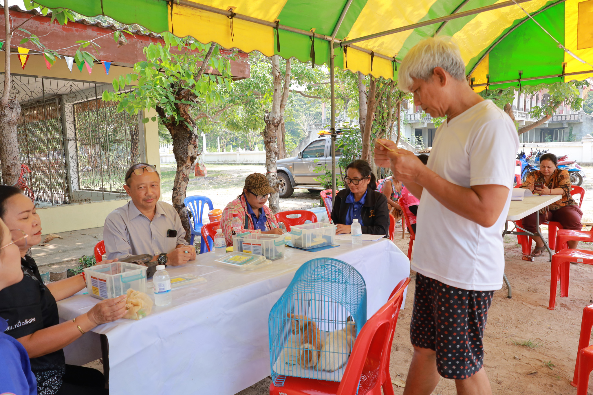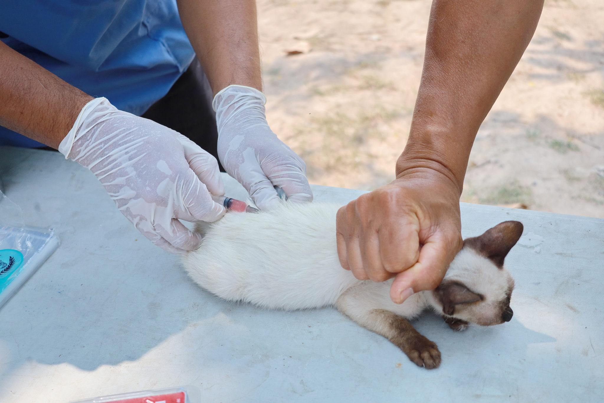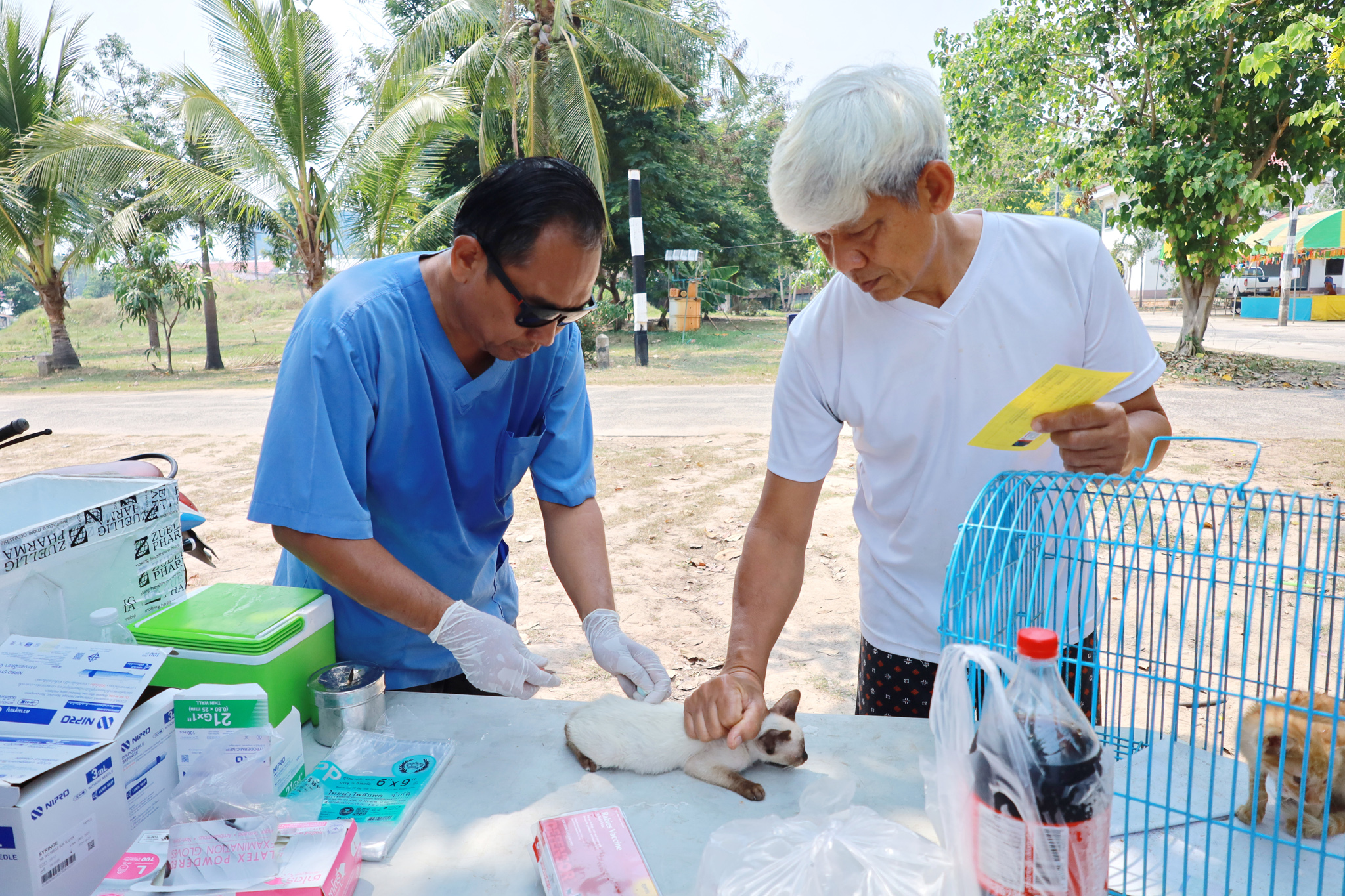 วันที่ 3 เมษายน 2569 เวลา 09.00 น. งานสัตวแพทย์ กองสาธารณสุขและสิ่งแวดล้อม เทศบาลเมืองวารินชำราบ โดย นายอภิวุฒิ ภะวัง นายสัตวแพทย์ชำนาญการ พร้อมด้วยเจ้าหน้าที่กองสาธารณสุขและสิ่งแวดล้อม และสมาชิก อสม. ในพื้นที่ ได้ออกหน่วยให้บริการฉีดวัคซีนป้องกันโรคพิษสุนัขบ้าและสำรวจประชากรสัตว์เลี้ยง ในชุมชนหาดสวนสุข และหาดสวนสุข 1 ตามโครงการ อสม.ห่วงใยใส่ใจโรคพิษสุนัขบ้า ฉีดวัคซีนให้สัตว์ปลอดโรค คนปลอดภัยจากโรคพิษสุนัขบ้า ตามพระปณิธาน ศาสตราจารย์ ดร.สมเด็จพระเจ้าน้องนางเธอเจ้าฟ้าจุฬาภรณ์วลัยลักษณ์ อัครราชกุมารี กรมพระศรีสวางควัฒน วรขัตติยราชนารี ประจำปีงบประมาณ 2569 เพื่อป้องกันและควบคุมโรคพิษสุนัขบ้าในชุมชนเขตเทศบาลเมืองวารินชำราบ ณ ศาลาวัดหาดสวนสุข