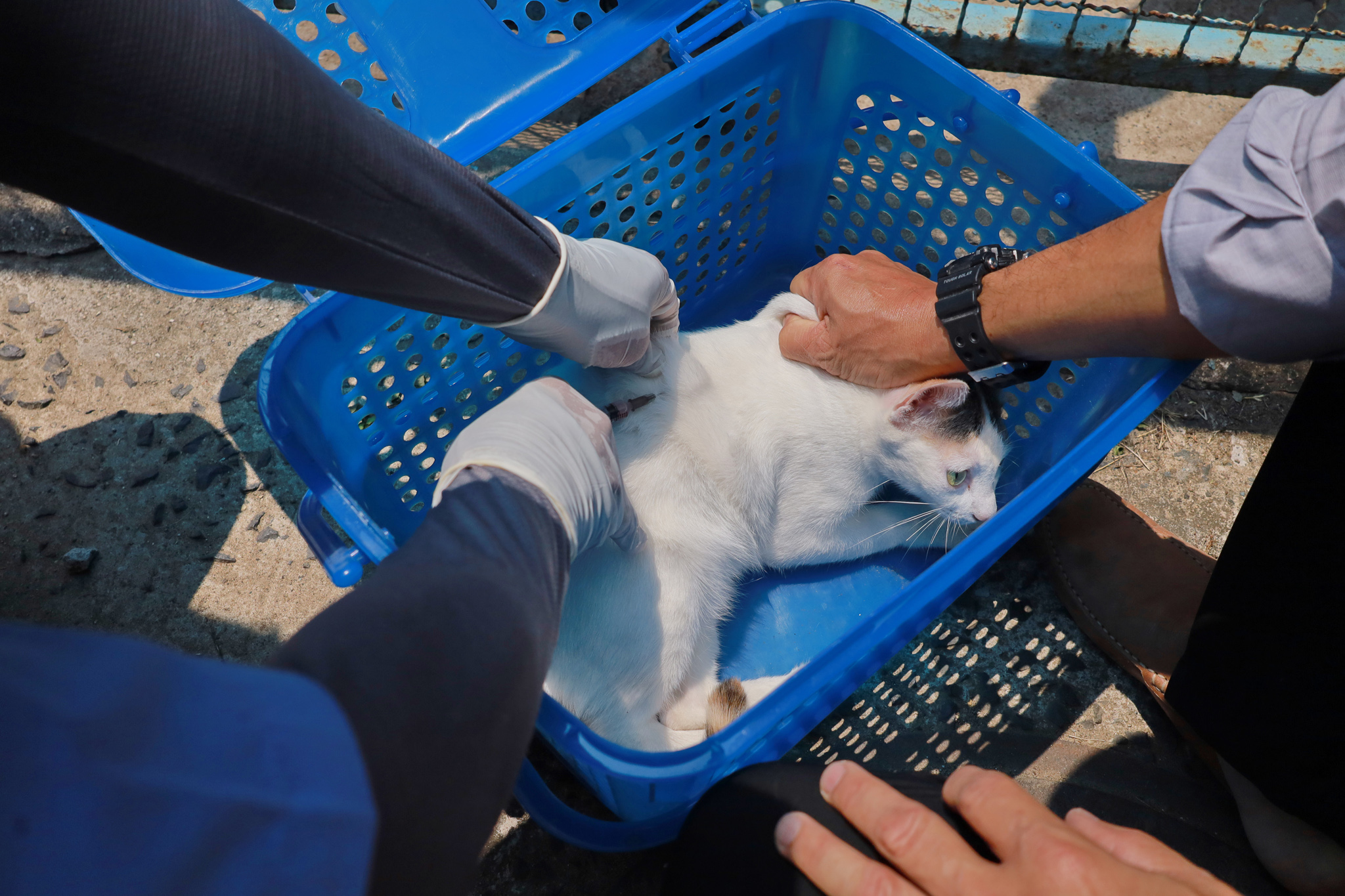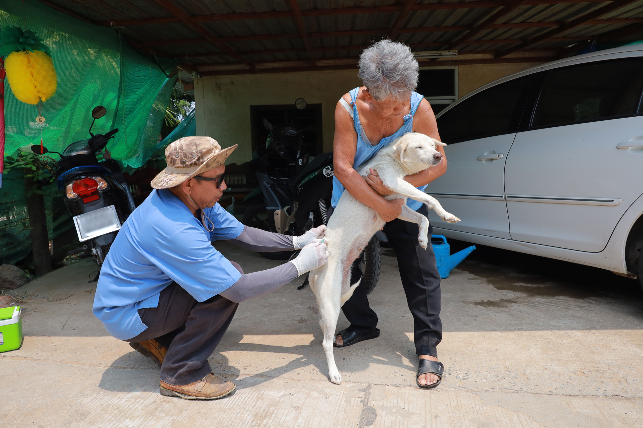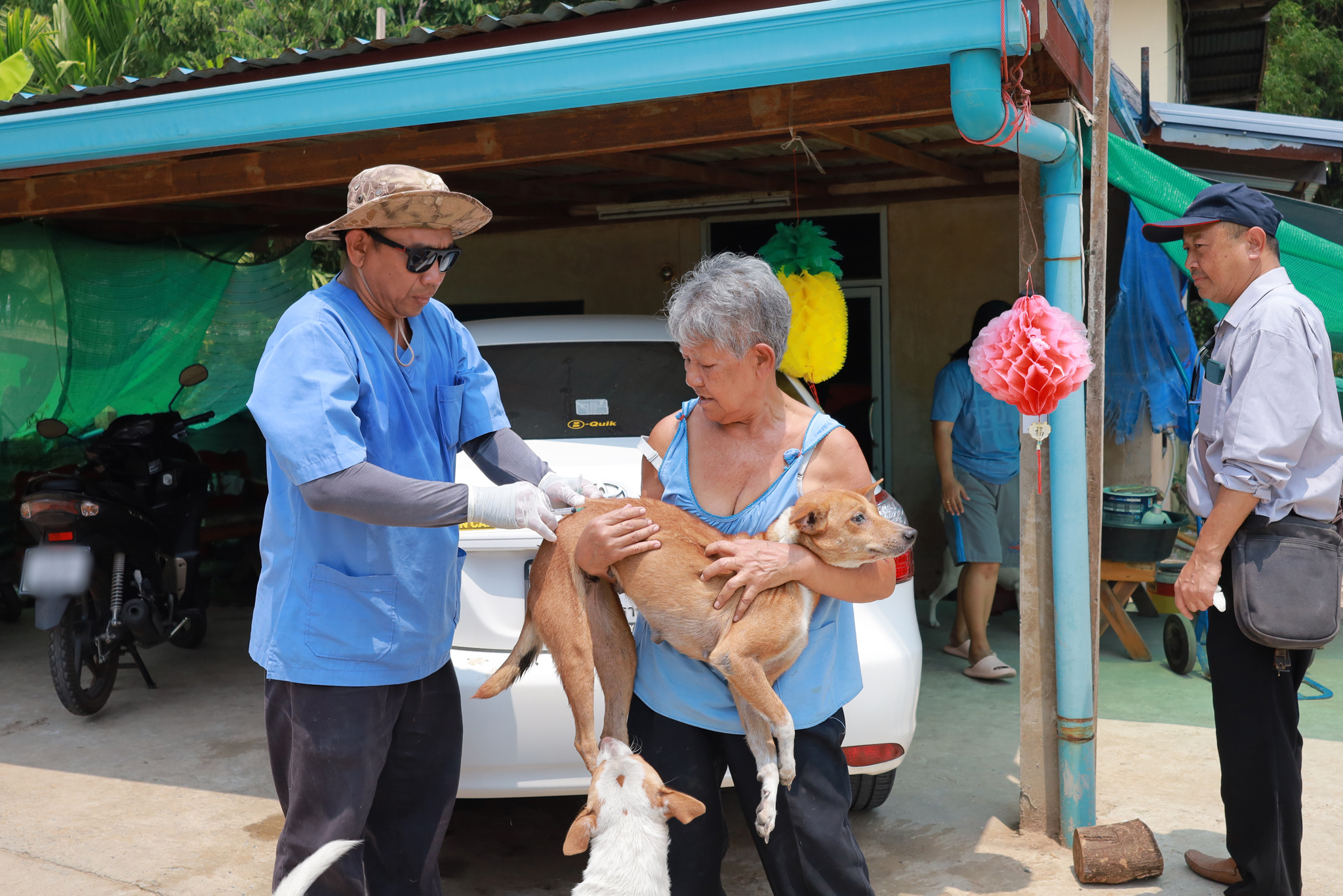 วันที่ 3 เมษายน 2569 เวลา 09.00 น. งานสัตวแพทย์ กองสาธารณสุขและสิ่งแวดล้อม เทศบาลเมืองวารินชำราบ โดย นายอภิวุฒิ ภะวัง นายสัตวแพทย์ชำนาญการ พร้อมด้วยเจ้าหน้าที่กองสาธารณสุขและสิ่งแวดล้อม และสมาชิก อสม. ในพื้นที่ ได้ออกหน่วยให้บริการฉีดวัคซีนป้องกันโรคพิษสุนัขบ้าและสำรวจประชากรสัตว์เลี้ยง ในชุมชนหาดสวนสุข และหาดสวนสุข 1 ตามโครงการ อสม.ห่วงใยใส่ใจโรคพิษสุนัขบ้า ฉีดวัคซีนให้สัตว์ปลอดโรค คนปลอดภัยจากโรคพิษสุนัขบ้า ตามพระปณิธาน ศาสตราจารย์ ดร.สมเด็จพระเจ้าน้องนางเธอเจ้าฟ้าจุฬาภรณ์วลัยลักษณ์ อัครราชกุมารี กรมพระศรีสวางควัฒน วรขัตติยราชนารี ประจำปีงบประมาณ 2569 เพื่อป้องกันและควบคุมโรคพิษสุนัขบ้าในชุมชนเขตเทศบาลเมืองวารินชำราบ ณ ศาลาวัดหาดสวนสุข