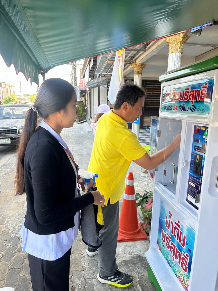 วันที่ 20 มกราคม 2568 เวลา 10.00 น. งานสุขาภิบาลและอนามัยสิ่งแวดล้อม กองสาธารณสุขและสิ่งแวดล้อม เทศบาลเมืองวารินชำราบ นำโดยนางสาวชนัญญา ศุภลักษณ์ นักวิชาการสุขาภิบาลปฏิบัติการ พร้อมด้วยนางสาวศิริมาส สิทธิโชค นักวิชาการสุขาภิบาลปฏิบัติการ และเจ้าหน้าที่กองสาธารณสุขและสิ่งแวดล้อม ได้ดำเนินการออกสำรวจเก็บตัวอย่างน้ำจากตู้หยอดเหรียญ เพื่อเป็นการเฝ้าระวังและตรวจสอบคุณภาพน้ำจากตู้หยอดเหรียญ ภายในเขตเทศบาลเมืองวารินชำราบ