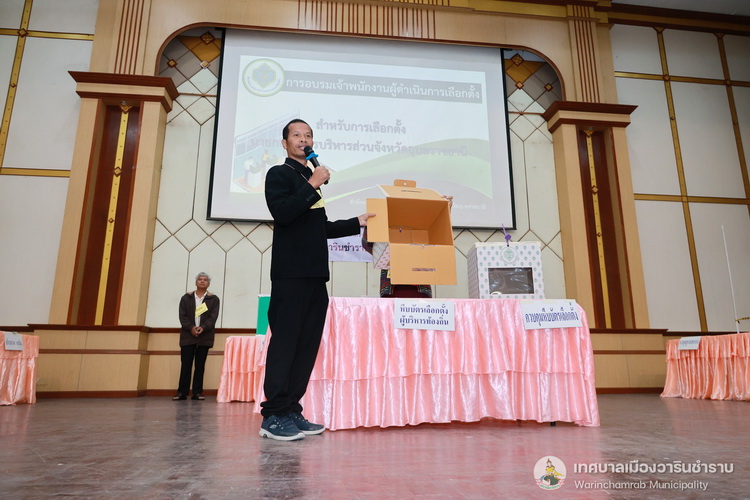 วันที่ 24 มกราคม 2568 เวลา 09.00 น. ณ หอประชุมประชาวาริน นางรุ่งนภา ทับหนองฮี หัวหน้าสำนักปลัดเทศบาล รักษาราชการแทนปลัดเทศบาล เป็นวิทยากร ในการฝึกอบรมกรรมการประจำหน่วยเลือกตั้ง (กปน.) รุ่นที่ 1 ด้วยผู้อำนวยการการเลือกตั้งประจำองค์การบริหารส่วนจังหวัดอุบลราชธานี ประกาศให้มีการเลือกตั้งสมาชิกสภาองค์การบริหารส่วนจังหวัดอุบลราชธานี กรณีพ้นจากตำแหน่งเพราะเหตุอื่นใดนอกจากครบวาระ โดยกำหนดให้วันเสาร์ที่ 1 กุมภาพันธ์ 2568 เป็นวันเลือกตั้ง เพื่อชี้แจงแนวปฏิบัติและข้อปฏิบัติ ได้รับทราบข้อกฎหมาย และข้อพึงระวังในการปฏิบัติหน้าที่ และฝึกปฏิบัติการทำหน้าที่ของกรรมการประจำหน่วยเลือกตั้งเป็นไปด้วยความเรียบร้อย