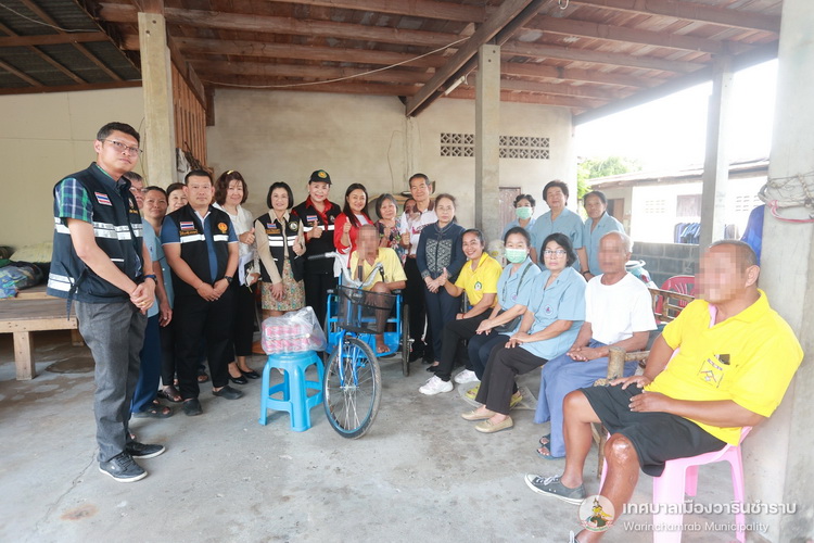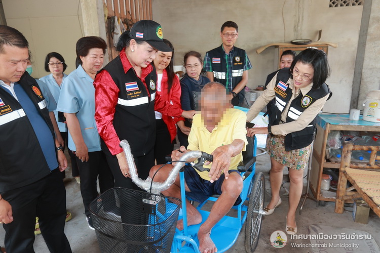 วันที่ 19 กุมภาพันธ์ 2568 นายจีระชัย ไกรกังวาร นายกเทศมนตรีเมืองวารินชำราบ ได้มอบหมายให้ นายบุญยง จินตนะกุล รองนายกเทศมนตรีเมืองวารินชำราบ พร้อมด้วยนางรุ่งนภา ทับหนองฮี หัวหน้าสำนักปลัดเทศบาล รักษาราชการแทนปลัดเทศบาล ให้การต้อนรับ นางกรรณิกา ตันติศิรินทร์ รองนายกองค์การบริหารส่วนจังหวัดอุบลราชธานี พร้อมด้วยนางสาวปริมภรณ์ ศรีวงษ์รักษ์ ผู้อำนวยการกองสวัสดิการสังคม และเจ้าหน้าที่ ในการลงพื้นที่ มอบรถวีลแชร์ และรถสามล้อโยก ให้กับคนพิการ จำนวน 1 ราย ที่ชุมชนหนองบก เขตเทศบาลเมืองวารินชำราบ ทั้งนี้เพื่อเป็นการช่วยเหลือเบื้องต้น ให้ผู้พิการสามารถช่วยเหลือตนเองได้และได้รับความสะดวกในการดำเนินชีวิตและการประกอบอาชีพ ตลอดจนเป็นการแบ่งเบาภาระของผู้ดูแลช่วยเหลือ อีกทั้งยังเป็นการพัฒนาคุณภาพชีวิตของผู้พิการให้ดีขึ้นต่อไป