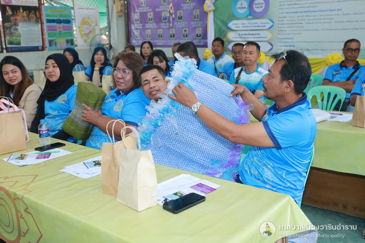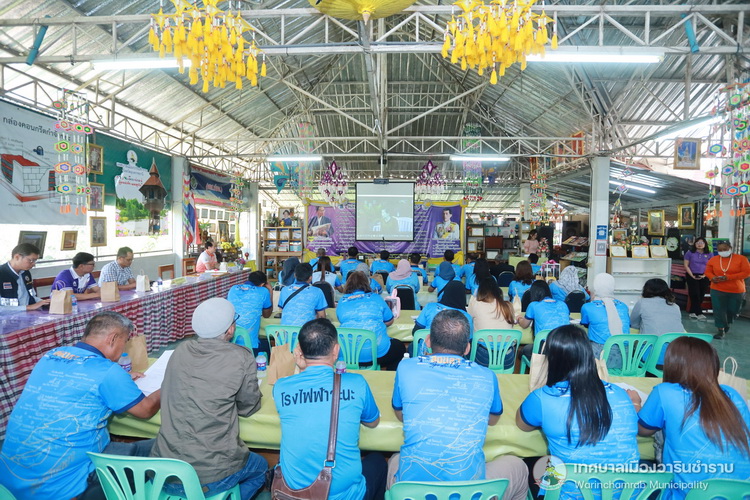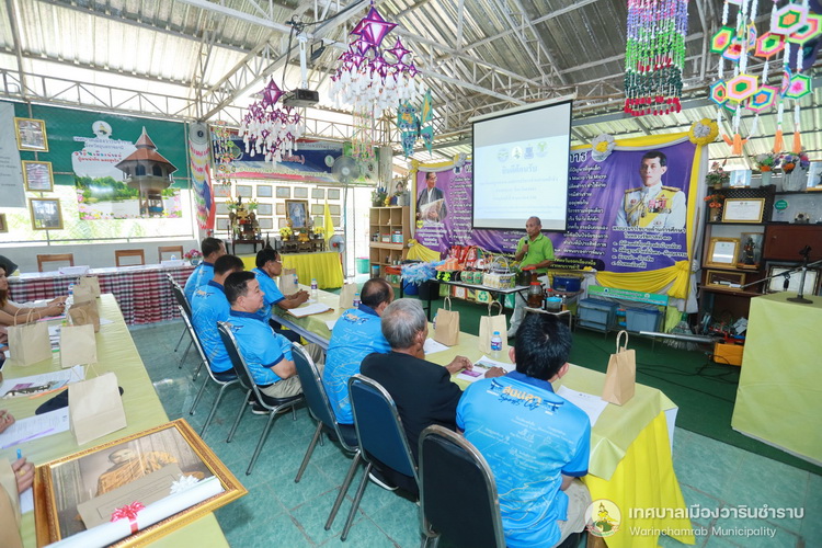 วันที่ 20 กุมภาพันธ์ 2568 เวลา 10.00 น. ณ ศูนย์เรียนรู้เพื่อการจัดการสิ่งแวดล้อม ชุมชนชลประทาน นายจีระชัย ไกรกังวาร นายกเทศมนตรี ได้มอบหมายให้นายณรงชัย ประสิทธิ์ภูริปรีชา รองนายกเทศมนตรี พร้อมด้วยหัวหน้าส่วนการงานเทศบาลเมืองวารินชำราบ ร่วมด้วยคณะทำงานศูนย์การเรียนรู้ฯ ชุมชนชลประทาน ให้การต้อนรับคณะผู้บริหาร สมาชิกสภาเทศบาล หัวหน้าส่วนการงาน และเจ้าหน้าที่ จากองค์การบริหารส่วนตำบลป่าชิง อำเภอจะนะ จังหวัดสงขลา นำโดยนายมะหะหมัด โต๊ะยะลา นายกองค์การบริหารส่วนตำบลป่าชิง ได้นำผู้นำชุมชนเข้าศึกษาดูงานด้านการบริหารจัดการขยะในชุมชนชลประทาน ซึ่งเป็นชุมชนในเขตเทศบาลเมืองวารินชำราบที่ประสบความสำเร็จในการลดปริมาณขยะภายในชุมชน โดยเป็นชุมชนต้นแบบภายใต้โครงการชุมชนปลอดขยะ Zero Waste ด้วยการนำขยะมารีไซเคิลผลิตเป็นสิ่งของเครื่องใช้ต่างๆ อาทิ ถังขยะลดโลกร้อน,ไม้กวาดจากขวดพลาสติก, เสื่อจากถุงพลาสติก, ผ้ากันเปื้อนจากป้ายไวนิล, เตาชีวมวลจากหม้อหุงข้าวที่ไม่ใช้แล้ว เป็นต้น ซึ่งช่วยลดปริมาณขยะในชุมชนที่จะต้องนำไปกำจัดต่อไป