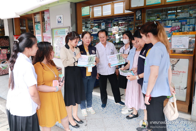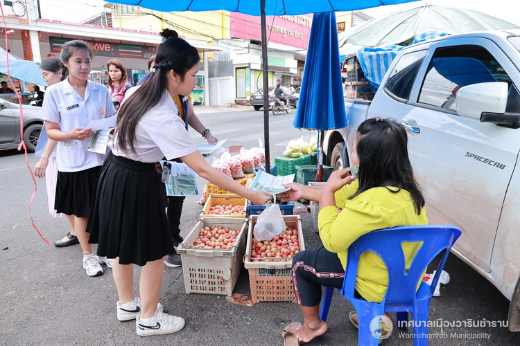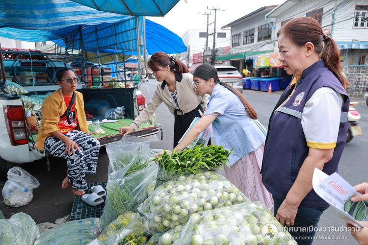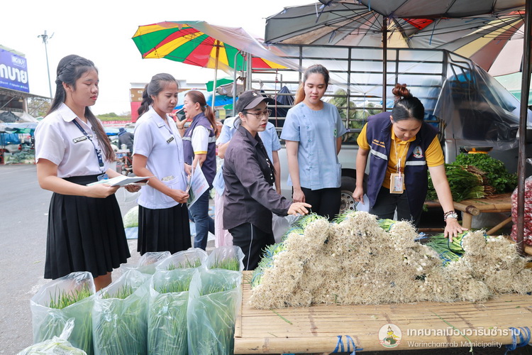 วันที่ 24 กุมภาพันธ์ 2568 เวลา 15.00 น. ณ ตลาดสดเทศบาลเมืองวารินชำราบ แห่งที่ 1 กองสาธารณสุขและสิ่งแวดล้อม เทศบาลเมืองวารินชำราบ นำโดยนางพฤกษา ตั้งกิจวนิชกุล ผู้อำนวยการกองสาธารณสุขและสิ่งแวดล้อม พร้อมด้วยเจ้าหน้าที่กองสาธารณสุขและสิ่งแวดล้อม ร่วมกับสาธารณสุขอำเภอวารินชำราบ และภญ.รุ่งนภา กงวงษ์ เภสัชกรชำนาญการพิเศษ กลุ่มงานเวชกรรมสังคม โรงพยาบาลวารินชำราบ ลงพื้นทีประชาสัมพันธ์แจ้งเตือนเฝ้าระวังและหลีกเลี่ยงการบริโภคต้นหอมที่มีคราบสีฟ้า เนื่องจากมีการปนเปื้อนสาร สารแมนโคเซบ (Mancozeb) ซึ่งมีความเสี่ยงอันตรายต่อสุขภาพในระบบสืบพันธุ์และเป็นอันตรายต่อทารก