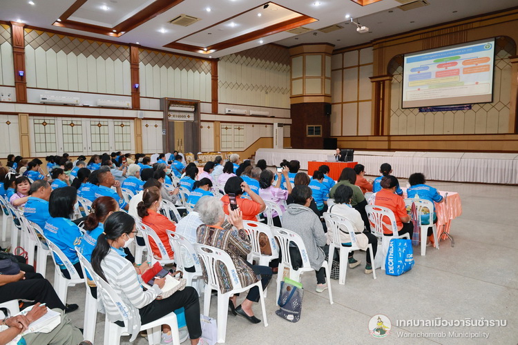 วันที่ 28 กุมภาพันธ์ 2568 เวลา 09.00 น. ณ หอประชุมประชาวาริน งานศูนย์บริการสาธารณสุข กองสาธารณสุขและสิ่งแวดล้อม ได้จัดโครงการอบรมเสริมสร้างสุขภาพ เฝ้าระวังและป้องกันโรค ในพื้นที่เทศบาลเมืองวารินชำราบ แก่อาสาสมัครสาธารณสุข (อสม.) เทศบาลเมืองวารินชำราบ และประชาชนทั่วไป ประจำเดือนกุมภาพันธ์ 2568 เพื่อเป็นการให้ความรู้เรื่องโรคต่างๆ และทบทวนความรู้ด้านการส่งเสริมสุขภาพแก่คนในชุมชน จากนั้นได้มีการมอบใบประกาศ สำหรับผู้ที่ผ่านการอบรมหลักสูตรผู้ดูแลผู้สูงอายุ (Caregiver) จำนวน 70 ชั่วโมง สำหรับการอบรมในครั้งนี้เป็นการให้ความรู้ในเรื่องการจัดการมูลฝอย โดยนางสาวสุดาสวรรค์ สลักคำ ตำแหน่ง นักวิชาการสาธารณสุขชำนาญการ จากศูนย์อนามัยที่ 10 อุบลราชธานี มาเป็นวิทยากรให้ความรู้ในครั้งนี้