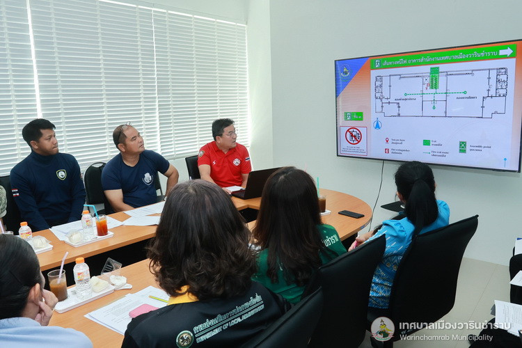 วันที่ 5 มีนาคม 2568 เวลา 09.00 น. ณ ห้องประชุมสุขใจ 3 นายณรงชัย ประสิทธิ์ภูริปรีชา รองนายกเทศมนตรี ได้เป็นประธานในการประชุมหัวหน้าส่วนราชการเทศบาลเมืองวารินชำราบ ในการเตรียมความพร้อมการฝึกซ้อมดับเพลิงและฝึกซ้อมอพยพหนีไฟ สำนักงานเทศบาลเมืองวารินชำราบ ประจำปี 2568 เพื่อเป็นการสร้างองค์ความรู้ ความเข้าใจ และมีความตระหนักในความปลอดภัยด้านอัคคีภัย ตลอดจนเป็นการกระตุ้นและส่งเสริมการมีส่วนร่วมของบุคลากรในสำนักงาน และจะดำเนินการฝึกซ้อมดับเพลิงและฝึกซ้อมอพยพหนีไฟ โดยการจำลองเหตุการณ์ และฝึกซ้อมเสมือนเหตุการณ์จริง ในวันที่ 6 มีนาคม 2568 เวลา 10.00 น. เป็นต้นไป