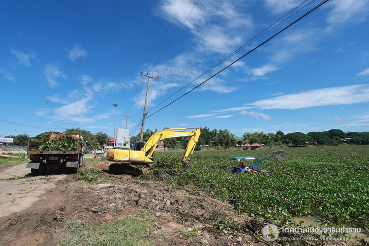 วันที่ 22 ตุลาคม 2567 ณ แหล่งน้ำกุดปลาขาว (ฝั่งศูนย์บริการสาธารณสุขแห่งที่ 3) กองช่างสุขาภิบาล นำโดยนางธิติมา อึ้งประเสริฐ ผู้อำนวยการกองช่างสุขาภิบาล ได้นำเจ้าหน้าที่กองช่างสุขาภิบาล ได้ดำเนินการขุดลอกผักตบชวาและวัชพืชในแหล่งน้ำ และพัฒนาฟื้นฟูและแก้ไขปัญหาแหล่งน้ำสาธารณะภายในเขตเทศบาลเมืองวารินชำราบให้มีคุณภาพที่ดีขึ้น และเป็นการรักษาความสมดุลของระบบนิเวศในแหล่งน้ำ ตามโครงการกำจัดผักตบชวาและวัชพืชในแหล่งน้ำ เพื่อเป็นการเฉลิมพระเกียรติพระบาทสมเด็จพระปรเมนทรารามาธิบดีศรีสินทรมหาวชิราลงกรณ พระวชิรเกล้าเจ้าอยู่หัว โดยได้รับการสนับสนุนเครื่องจักรขนาดใหญ่ และรถบรรทุกจากองค์การบริหารส่วนจังหวัดอุบลราชธานี โดยกิจกรรมครั้งนี้จะดำเนินการในระหว่างวันที่ 21 - 22 , 24 - 25 , 28 - 31 ตุลาคม 2567 ,1 และ 4 พฤศจิกายน 2567