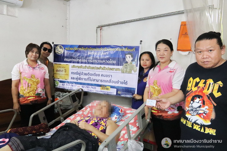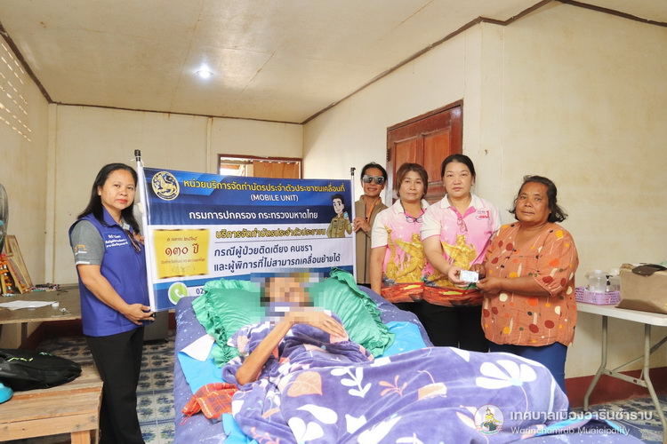 วันที่ 20 มีนาคม 2568 เวลา 09.00 น. นางรุ่งนภา ทับหนองฮี รองปลัดเทศบาล รักษาราชการแทนปลัดเทศบาล ได้มอบหมายให้ นางสาวฐิติรัตน์ เสาวภาคย์กุล นักจัดการบริหารงานทะเบียนและบัตรชำนาญการ และ นางสาวอารยา สุดตลอด เจ้าพนักงานทะเบียนชำนาญงาน ลงพื้นที่ร่วมกับเจ้าหน้าที่ศูนย์บริหารการทะเบียนภาค 3 สาขาอุบลราชธานี ในการจัดทำบัตรประจำตัวประชาชนนอกสถานที่แก่ผู้ป่วยติดเตียงในพื้นที่เทศบาลเมืองวารินชำราบ จำนวน 2 ราย ภายใต้โครงการหน่วยบริการจัดทำบัตรประจำตัวประชาชนเคลื่อนที่ (MOBILE UNIT) บริการจัดทำบัตรประจำตัวประชาชน กรณีผู้ป่วยติดเตียง คนชรา และผู้พิการที่ไม่สามารถเคลื่อนย้ายได้ ของกรมการปกครอง กระทรวงมหาดไท