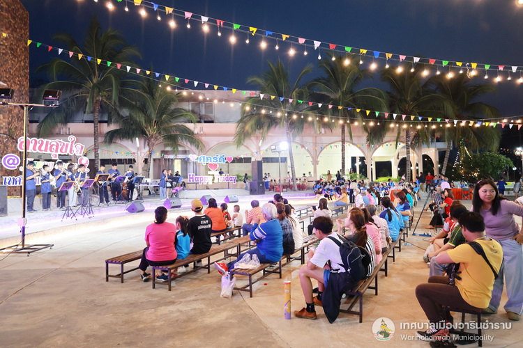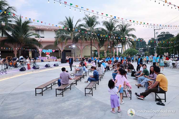 วันที่ 21 มีนาคม 2568 ณ ลานสุขใจ สนามกีฬาทุ่งคำน้ำแซบ เทศบาลเมืองวารินชำราบ จัดกิจกรรม "ดนตรีสร้างสุข" ซีซั่นที่ 2 ครั้งที่ 3 เพื่อเปิดโอกาสให้ นักเรียน นักศึกษา และประชาชน ได้มีพื้นที่แสดงความสามารถทางด้านดนตรี และยังเป็นการส่งเสริมให้เด็ก เยาวชน ประชาชน มีใจรักและตระหนักถึงคุณค่าของศิลปะการดนตรี รวมถึงยังเป็นการสร้างความผ่อนคลาย และสร้างสุขภาวะทางอารมณ์ที่ดีแก่ประชาชนในพื้นที่ อีกทั้งยังเป็นการส่งเสริมการจำหน่ายสินค้า ที่เป็นมิตรต่อสิ่งแวดล้อมจากชุมชนในเขตเทศบาลเมืองวารินชำราบ ซึ่งในสัปดาห์นี้เป็นการแสดงรำนาฏศิลป์บ้านครูเมย์ และการแสดงจากดนตรีจากวงวิชาชาติแบนด์ โรงเรียนเทศบาลวารินวิชาชาติมาร่วมสร้างความสนุก และความสุขใจ แก่ผู้ที่มาร่วมงานในครั้งนี้ พบกับกิจกรรม "ดนตรีสร้างสุข" ทุกเย็นวันศุกร์‘ ตั้งแต่เวลา 17.00 น. เป็นต้นไป ณ ลานสุขใจ สนามทุ่งคำน้ำแซบ