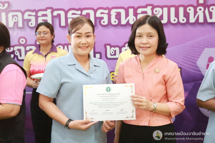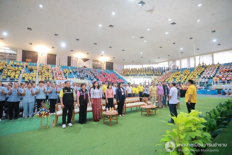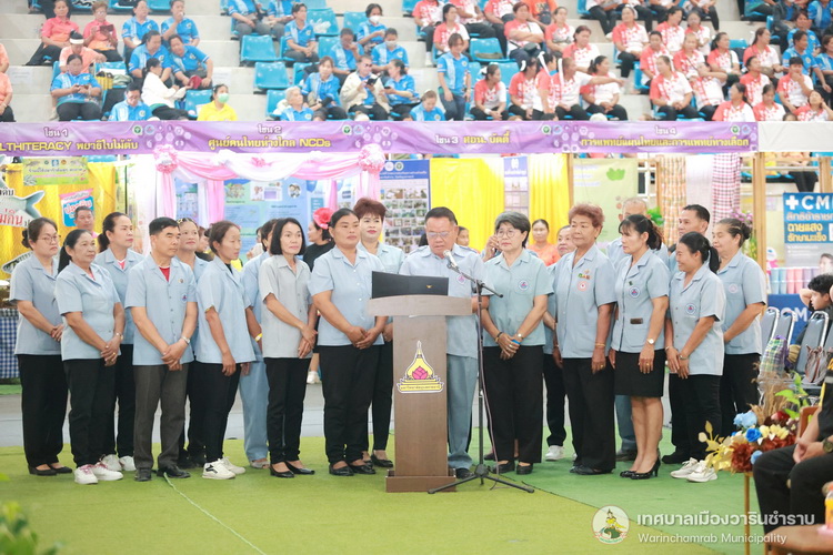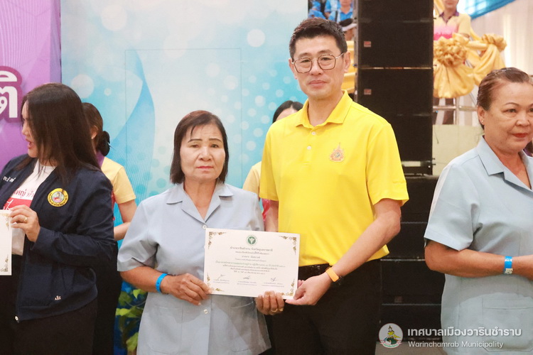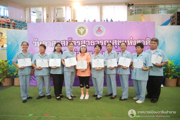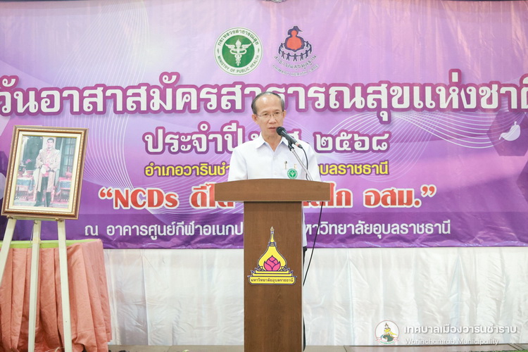 วันที่ 25 มีนาคม 2568 เวลา 8.00 น. ณ อาคารศูนย์กีฬาอเนกประสงค์ มหาวิทยาลัยอุบลราธานี เทศบาลเมืองวารินชำราบโดย งานศูนย์บริการสาธารณสุข กองสาธารณสุขและสิ่งแวดล้อม นำโดยนางพีระพิชญ์ รวมธรรม หัวหน้าฝ่ายบริการสาธารณสุข และเจ้าหน้าที่กองสาธารณสุขและสิ่งแวดล้อม ได้นำสมาชิกอาสาสมัครสาธารณสุขประจำหมู่บ้าน (อสม.) เข้าร่วมกิจกรรมเชิดชูเกียรติวันอาสาสมัครสาธารณสุขแห่งชาติ ประจำปี 2568 เพื่อเป็นการยกย่องเชิดชูเกียรติ อสม.ที่ปฏิบัติหน้าที่ดีเด่นในแต่ละสาขา รวมถึงยังเป็นการแสดงออกถึงความรัก ความสามัคคีกันของกลุ่ม อสม. ในอำเภอวารินชำราบ ซึ่งในพิธีเปิดกิจกรรมได้รับเกียรติจากนายแพทย์ธีระพงษ์ แก้วภมร นายแพทย์สาธารณสุขจังหวัดอุบลราชธานี มาเป็นประธานในพิธี และมอบใบประกาศนียบัตรแก่ อสม.ดีเด่น ในระดับต่างๆ แก่ อสม.ที่ปฏิบัติงานครบ 10 ปี, อสม.ที่ปฏิบัติงานครบ 20 ปี และ อสม.ที่ปฏิบัติงานครบ 30 ปี และการแสดงจากกลุ่มตัวแทน สมาชิก อสม.