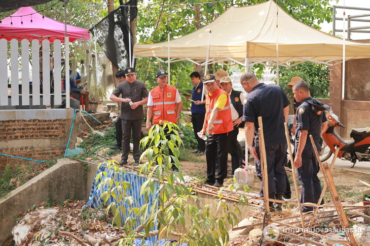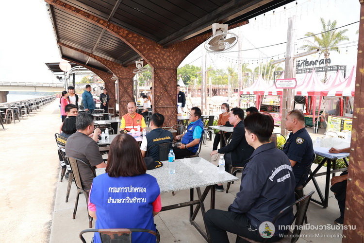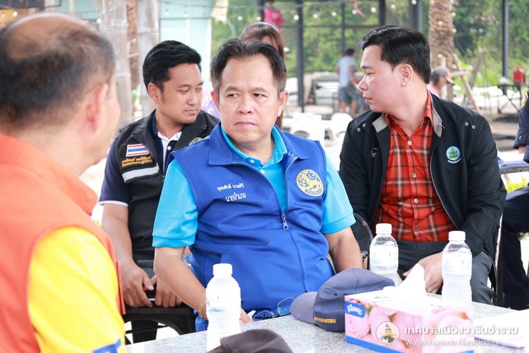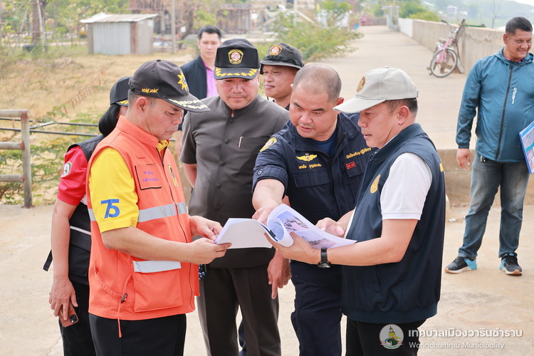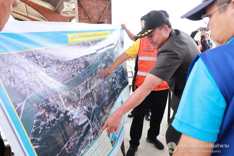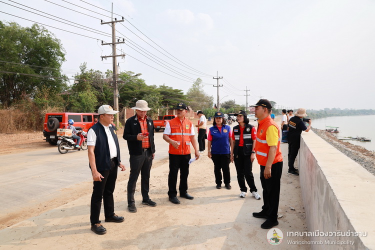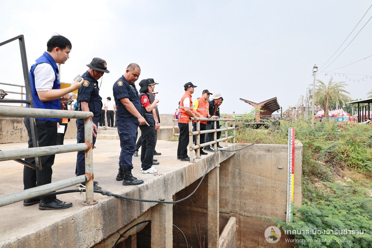 วันที่ 27 มีนาคม 2568 เวลา 14.00 น. นายจีระชัย ไกรกังวาร นายกเทศมนตรีเมืองวารินชำราบ ได้มอบหมายให้นางรุ่งนภา ทับหนองฮี รองปลัดเทศบาล รักษาราชการแทนปลัดเทศบาลเมืองวารินชำราบ พร้อมด้วยจ่าเอกประกาศ ตระการไทย หัวหน้าฝ่ายป้องกันและบรรเทาสาธารณภัย ร่วมด้วยนายอุดมศักดิ์ นวลศิริ นายอำเภอวารินชำราบ ได้ให้การต้อนรับ นายภพ ภูสมปอง รองผู้ว่าราชการจังหวัดอุบลราชธานี พร้อมคณะ ในการลงพื้นที่สำรวจจุดเสี่ยงอุทกภัยในพื้นที่อำเภอวารินชำราบ เพื่อนำมาทบทวนและปรับปรุงแผนเผชิญเหตุอุทกภัยของจังหวัด และเป็นระบบฐานข้อมูลพื้นฐานที่เสี่ยงอุทกภัย ในการนำมาวิเคราะห์ เพื่อเตรียมความพร้อมป้องกันและแก้ไขปัญหาอุทกภัยต่อไป