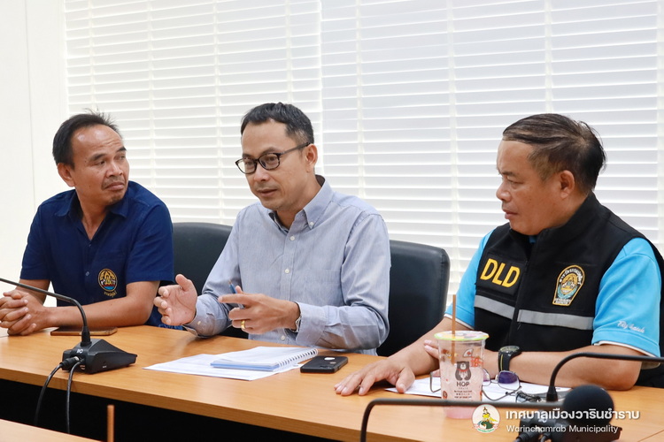 วันที่ 27 มีนาคม 2568 เวลา 14.30 น. กองสาธารณสุขและสิ่งแวดล้อม เทศบาลเมืองวารินชำราบ ร่วมกับ สำนักงานปศุสัตว์จังหวัดอุบลราชธานี สำนักงานปศุสัตว์อำเภอวารินชำราบ และผู้ประกอบการแปรรูปโค-กระบือ ชุมชนท่าบ้งมั่ง ได้ประชุมหารือถึงแนวทางการก่อสร้างสถานประกอบการแปรรูปโค-กระบือ ขนาดเล็กพิเศษ กำลังการผลิต 1-3 ตัว/วัน ภายในชุมชนท่าบ้งมั่ง โดยมี นายณรงชัย ประสิทธิ์ภูริปรีชา รองนายกเทศมนตรีเมืองวารินชำราบ เป็นประธานในการประชุม ณ ห้องประชุมสุขใจ 2 เพื่อหารือถึงแนวทางความเป็นไปได้ในการก่อสร้างสถานประกอบการแปรรูปโค-กระบือ ขนาดเล็กพิเศษ ภายในชุมชนที่ถูกต้องตามหลักสุขาภิบาลและข้อปฏิบัติของกรมปศุสัตว์