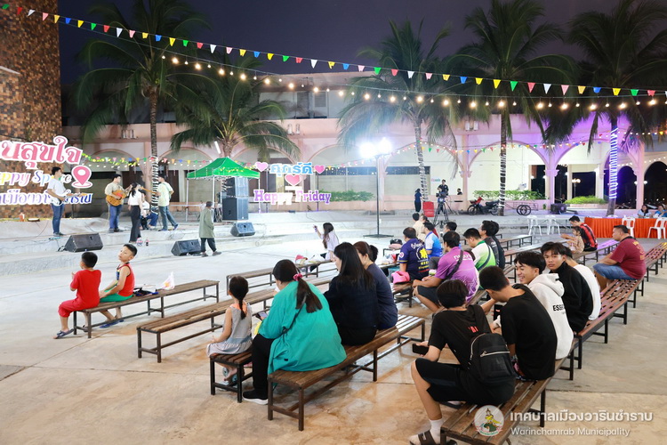 วันที่ 28 มีนาคม 2568 ณ ลานสุขใจ สนามกีฬาทุ่งคำน้ำแซบ เทศบาลเมืองวารินชำราบ จัดกิจกรรม "ดนตรีสร้างสุข" ซีซั่นที่ 2 ครั้งที่ 4 เพื่อเปิดโอกาสให้ นักเรียน นักศึกษา และประชาชน ได้มีพื้นที่แสดงความสามารถทางด้านดนตรี และยังเป็นการส่งเสริมให้เด็ก เยาวชน ประชาชน มีใจรักและตระหนักถึงคุณค่าของศิลปะการดนตรี รวมถึงยังเป็นการสร้างความผ่อนคลาย และสร้างสุขภาวะทางอารมณ์ที่ดีแก่ประชาชนในพื้นที่ อีกทั้งยังเป็นการส่งเสริมการจำหน่ายสินค้า ที่เป็นมิตรต่อสิ่งแวดล้อมจากชุมชนในเขตเทศบาลเมืองวารินชำราบ ซึ่งในสัปดาห์นี้เป็นการแสดงดนตรีจากวง Laminate โรงเรียนลือคำหาญวารินชำราบ มาร่วมสร้างความสนุก และความสุขใจ แก่ผู้ที่มาร่วมงานในครั้งนี้ พบกับกิจกรรม "ดนตรีสร้างสุข" ทุกเย็นวันศุกร์‘ ตั้งแต่เวลา 17.00 น. เป็นต้นไป ณ ลานสุขใจ สนามทุ่งคำน้ำแซบ