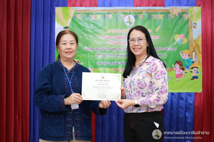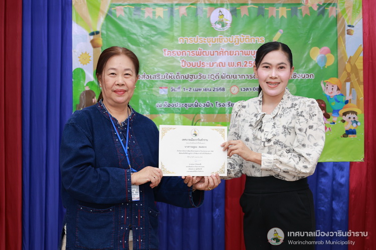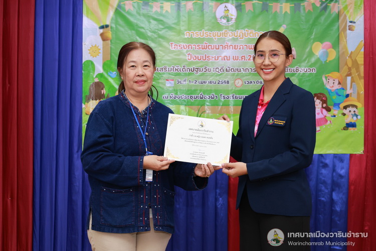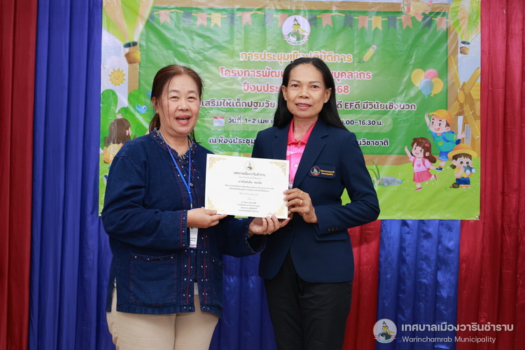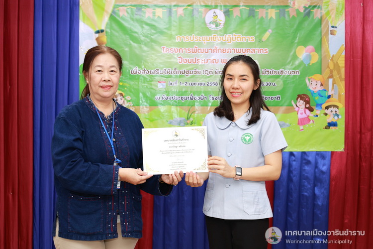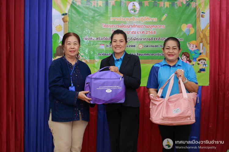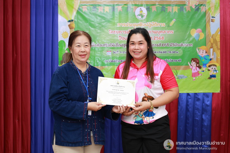 วันที่ 2 เมษายน 2568 เวลา 09.00 น. ณ ห้องประชุมเฟื่องฟ้า โรงเรียนเทศบาลวารินวิชาชาติ กองสาธารณสุขและสิ่งแวดล้อม เทศบาลเมืองวารินชำราบ จัดโครงการพัฒนาศักยภาพบุคลากร ปีงบประมาณ พ.ศ.2568 วันที่ 2 เพื่อส่งเสริมให้เด็กปฐมวัย IQ ดี พัฒนาการดี EF ดี มีวินัยเชิงบวก ในการพัฒนาศักยภาพบุคลากรด้านการประเมินทักษะ EF และส่งเสริมวินัยเชิงบวก โดยมีผู้บริหารสถานศึกษา พนักงานครูปฐมวัย ผู้ดูแลเด็ก และเจ้าหน้าที่ศูนย์บริการสาธารณสุข เข้าร่วมในโครงการฝึกอบรม ซึ่งในการอบรมครั้งนี้ได้รับเกียรติจากนางมณีญาภา ถาศักดิ์ นักสาธารณสุขปฏิบัติการ ,นางวริษฐา หลักเขต นักสาธารณสุขปฏิบัติการ จากสำนักงานสาธารณสุขจังหวัดอุบลราชธานี และ นางสาวณฐมน สมเสนาะ พยาบาลวิชาชีพชำนาญการ จากศูนย์อนามัยที่ 10 อุบลราชธานี เป็นวิทยากรบรรยายให้ความรู้