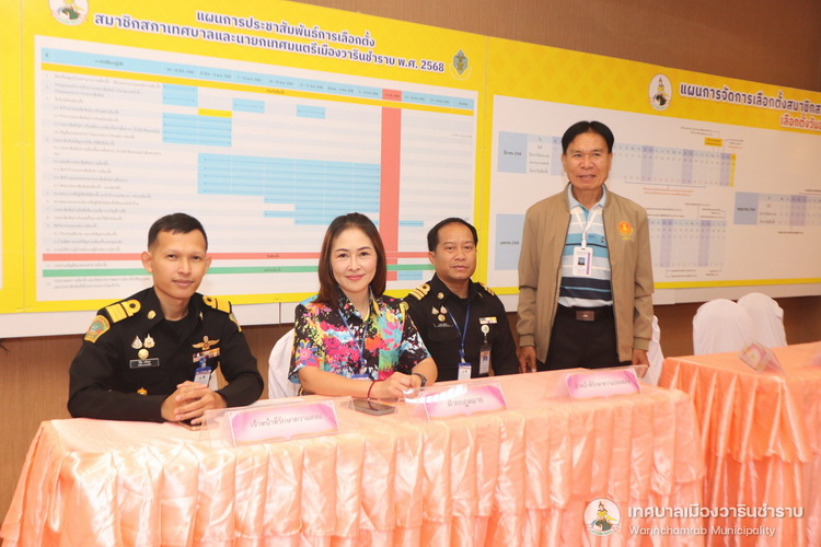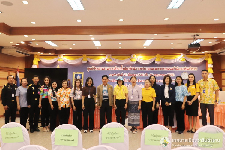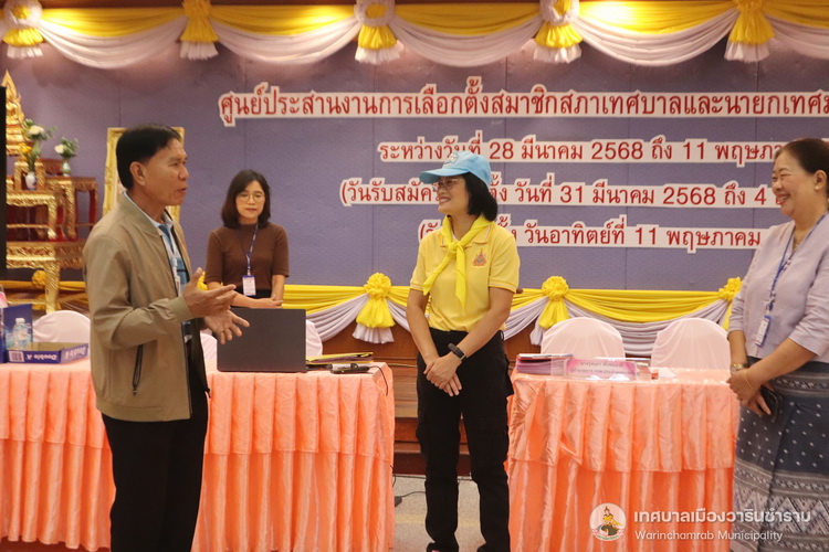 วันที่ 4 เมษายน 2568 เวลา 10.00 น. นางรุ่งนภา ทับหนองฮี ผู้อำนวยการการเลือกตั้งประจำเทศบาลเมืองวารินชำราบ ต้อนรับนายสะอาด ศรีวรรณ ผู้ตรวจการเลือกตั้งประจำจังหวัดอุบลราชธานี และคณะ ได้เดินทางมาตรวจเยี่ยมศูนย์ประสานงานการเลือกตั้งสมาชิกสภาเทศบาลและนายกเทศมนตรีเมืองวารินชำราบ เพื่อให้การรับสมัครรับเลือกตั้งสมาชิกสภาเทศบาลและนายกเทศมนตรีเมืองวารินชำราบเป็นไปด้วยความเรียบร้อย