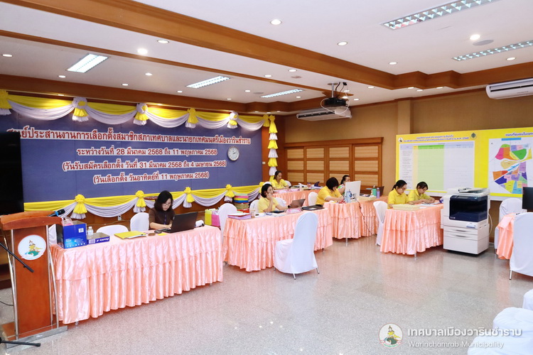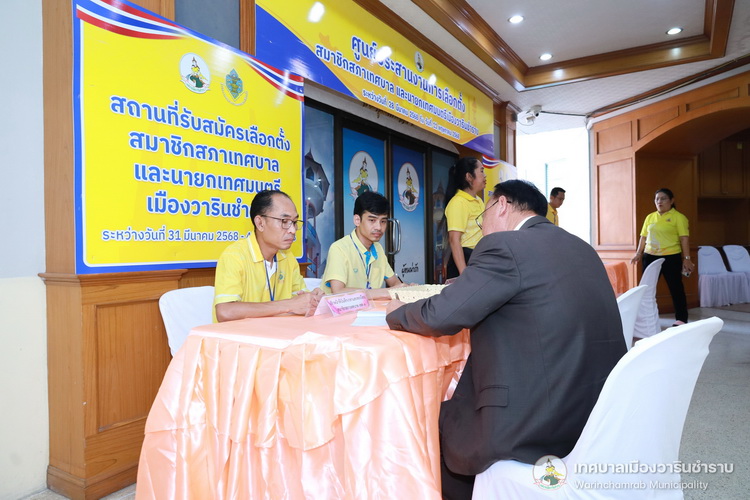 วันที่ 4 เมษายน 2568 เวลา 08.30 น. ณ ศูนย์ประสานงานการเลือกตั้งสมาชิกสภาเทศบาลและนายกเทศมนตรีเมืองวารินชำราบ ห้องประชุมประทุมเทพภักดี 1 (ชั้น2) อาคารสำนักทะเบียนท้องถิ่น เทศบาลเมืองวารินชำราบ ได้เปิดการรับสมัครรับเลือกตั้งสมาชิกสภาเทศบาลและนายกเทศมนตรีเมืองวารินชำราบ เป็นวันที่ 5 (วันสุดท้าย) โดยมีนางรุ่งนภา ทับหนองฮี ผู้อำนวยการการเลือกตั้งประจำเทศบาลเมืองวารินชำราบ และคณะกรรมการการเลือกตั้งประจำเทศบาลเมืองวารินชำราบ ดูแลการรับสมัครรับเลือกตั้งให้เป็นไปด้วยความเรียบร้อย ซึ่งบรรยากาศการรับสมัครรับเลือกตั้งสมาชิกสภาเทศบาลและนายกเทศมนตรีเมืองวารินชำราบ ในวันที่ 5 (วันสุดท้าย) มีผู้สมัครสมาชิกสภาเทศบาล เขตที่ 3 เพิ่มอีก 1 ท่าน