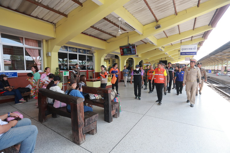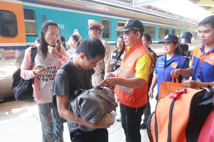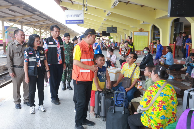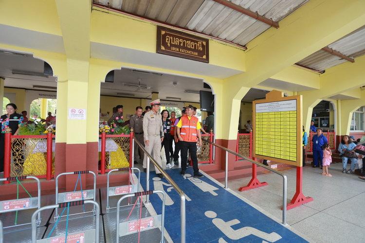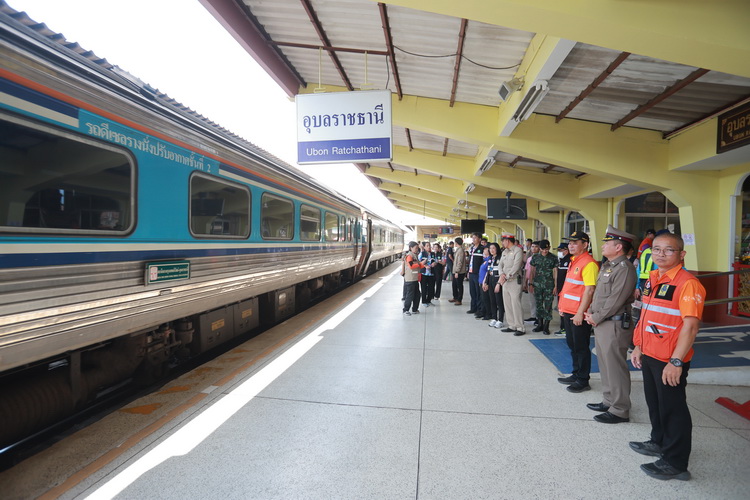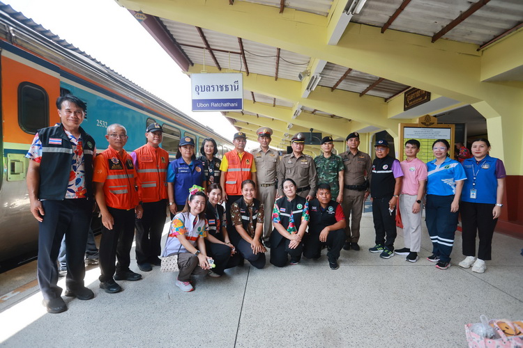 ในการนี้ นายภพ ภูสมปอง รองผู้ว่าราชการจังหวัดอุบลราชธานี ได้เน้นย้ำถึงความสำคัญของความปลอดภัยในการเดินทาง และร่วมแจกของที่ระลึกเพื่อสร้างขวัญกำลังใจแก่ผู้โดยสารที่มาใช้บริการรถไฟ