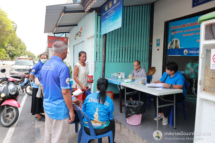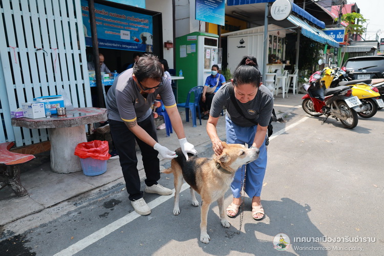 วันที่ 23 เมษายน 2568 เวลา 09.00 น. นายอภิวุฒิ ภะวัง นายสัตวแพทย์ชำนาญการ พร้อมด้วยเจ้าหน้าที่กองสาธารณสุขและสิ่งแวดล้อม ได้ออกหน่วยให้บริการฉีดวัคซีนป้องกันโรคพิษสุนัขบ้าและสำรวจประชากรสัตว์เลี้ยง ณ ศาลากลางบ้านชุมชนคำน้ำแซบ และชุมชนอยู่เย็น ตามโครงการรณรงค์ฉีดวัคซีนป้องกันพิษสุนัขบ้าในสัตว์เลี้ยง ประจำปีงบประมาณ 2568 เพื่อเป็นการป้องกันและควบคุมโรคพิษสุนัขบ้าภายในชุมชนเขตเทศบาลเมืองวารินชำราบ โดยมีประชาชนจากชุมชนใกล้เคียงได้นำสุนัขและสัตว์เลี้ยงมาเข้ารับการฉีดวัคซีนกันเป็นจำนวนมาก