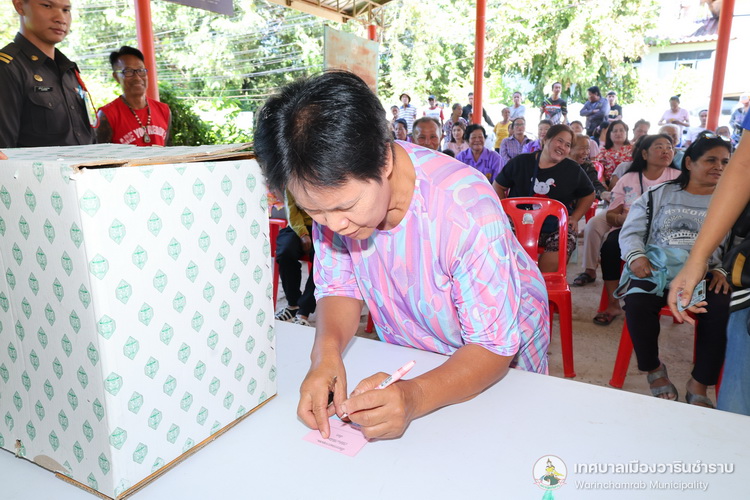 วันที่ 31 ตุลาคม 2567 เทศบาลเมืองวารินชำราบ ดำเนินการจัดการเลือกกรรมการชุมชน (แทนตำแหน่งที่ว่าง) ในเขตเทศบาลเมืองวารินชำราบ ใน 2 ชุมชน ซึ่งในภาคเช้าเป็นการเลือกกรรมการชุมชน(แทนตำแหน่งที่ว่าง) ในชุมชนหาดสวนสุข จำนวนตำแหน่งที่ว่าง 1 ตำแหน่ง และในภาคบ่ายเป็นการเลือกกรรมการชุมชน(แทนตำแหน่งที่ว่าง) ในชุมชนแสนสำราญ จำนวนตำแหน่งที่ว่าง 1 ตำแหน่ง ซึ่งบรรยากาศการเลือกกรรมการชุมชน ทั้ง 2 ชุมชน ในการนี้นางรุ่งนภา ทับหนองฮี หัวหน้าสำนักปลัดเทศบาล รักษาราชการแทนปลัดเทศบาล พร้อมด้วยนางสาวปริยา วงศ์กาฬสินธุ์ ผู้อำนวยการกองสวัสดิการสังคม ได้เข้าตรวจเยี่ยมการจัดการประชุมเลือกกรรมการชุมชน ซึ่งบรรยากาศการเลือกกรรมการชุมชน (แทนตำแหน่งที่ว่าง) ทั้ง 2 ชุมชน เป็นไปด้วยความเรียบร้อย