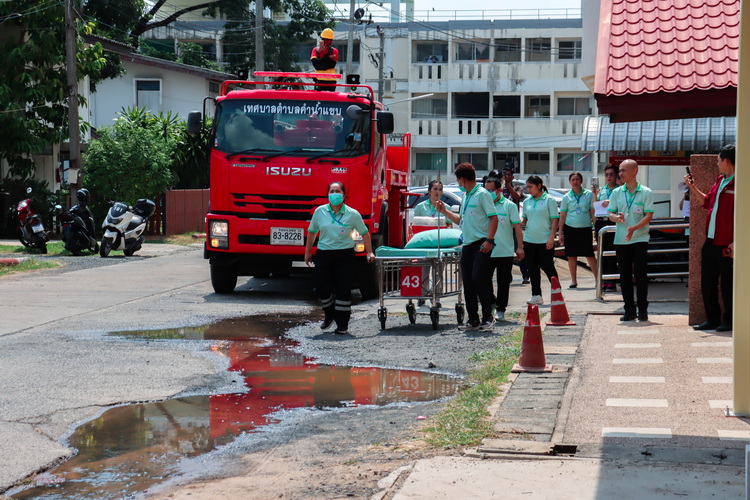 เมื่อวันที่ 24 เมษายน 2568 เทศบาลเมืองวารินชำราบ นำโดย จ่าเอกประกาศ ตระการไทย หัวหน้าฝ่ายป้องกันและบรรเทาสาธารณภัย พร้อมด้วย เจ้าหน้าที่ดับเพลิง งานป้องกันและบรรเทาสาธารณภัย ได้ร่วมการฝึกซ้อมแผนระงับอัคคีภัยและอพยพหนีไฟ โรงพยาบาลวารินชำราบ ประจำปี 2568 ร่วมกับ คณะกรรมการทีมนำด้านบริหารสิ่งแวดล้อมและความปลอดภัยในโรงพยาบาล (ENV) ร่วมกับงานป้องกันเเละบรรเทาสาธารณภัยเทศบาลเมืองวารินชำราบ สถานีตำรวจภูธรอำเภอวารินชำราบ และเทศบาลตำบลคำน้ำแซบ โดยมี นายแพทย์ปิยวัฒน์ อังควะนิช ผู้อำนวยการโรงพยาบาลวารินชำราบ เป็นประธานในการฝึกซ้อม ฯ ครั้งนี้ เพื่อทบทวนบทบาทหน้าที่ความรับผิดชอบ และแนวทางปฏิบัติของบุคลากรในองค์กร เมื่อเกิดเหตุฉุกเฉินที่ไม่คาดคิดด้านอัคคีภัยขึ้น ให้สามารถปฏิบัติการได้อย่างรวดเร็ว สามารถช่วยเหลืออพยพเคลื่อนย้ายผู้ป่วย ญาติ ผู้รับบริการ และตัวเองได้อย่างปลอดภัย และประสานหน่วยงานภายนอกเข้าช่วยเหลือเพื่อระงับเหตุเพลิงไหม้ให้เร็วที่สุด เพื่อให้เกิดความสูญเสียน้อยที่สุด และเพื่อปรับปรุงแนวทางปฏิบัติให้เหมาะสมกับบริบทสถานการณ์ที่เปลี่ยนแปลงไปในปัจจุบัน ที่มีการขยายตัวด้านโครงสร้างสถานที่ซับซ้อนขึ้น รวมถึงยังเป็นการทดสอบระบบ เครื่องมือ และอุปกรณ์ให้มีความเพียงพอพร้อมใช้ เพื่อรับมือกับสถานการณ์ฉุกเฉิน