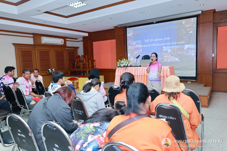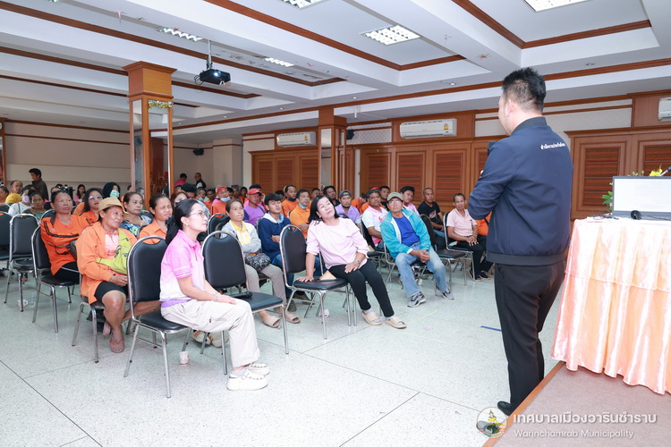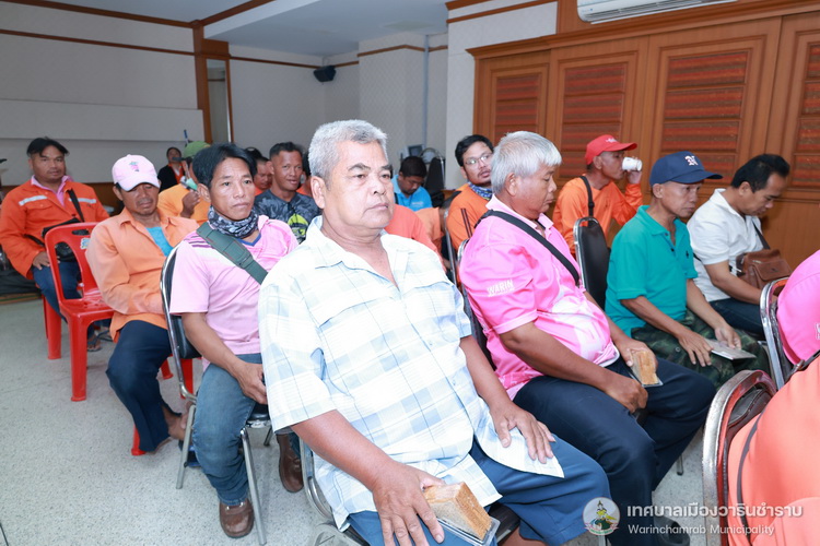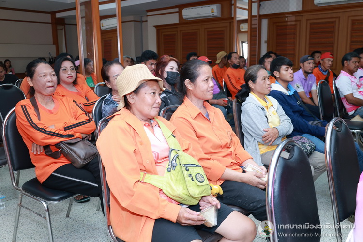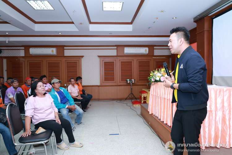 วันที่ 29 เมษายน 2568 เวลา 09.00 น. ณ ห้องประชุมประทุมเทพภักดี 2 กองสาธารณสุขและสิ่งแวดล้อม เทศบาลเมืองวารินชำราบ โดยนางพฤกษา ตั้งกิจวนิชกุล ผู้อำนวยการกองสาธารณสุขและสิ่งแวดล้อม พร้อมด้วยนางพีระพิชญ์ รวมธรรม หัวหน้าฝ่ายบริหารงานสาธารณสุข , นางสาวพิชามญชุ์ พงศ์ภัทรกาญน์ หัวหน้าฝ่ายบริการสาธารณสุข และเจ้าหน้าที่กองสาธารณสุขและสิ่งแวดล้อม ได้ประชุมพนักงานจ้างและพนักงานทำความสะอาดเทศบาลเมืองวารินชำราบ ตามโครงการเสริมสร้างสุขอนามัยและความปลอดภัยแก่ผู้ปฏิบัติงานรักษาความสะอาด ประจำปีงบประมาณ 2568 ครั้งที่ 2 เพื่อส่งเสริมสุขอนามัยและความปลอดภัยแก่ผู้ปฏิบัติงานรักษาความสะอาด และได้พบปะพูดคุยสอบถามถึงสภาพปัญหาในการปฏิบัติงานตามพื้นที่ที่ได้รับมอบหมาย และได้รับเกียรติจากนายเทพฤทธิ์ นนทะบุตร นักวิชาการแรงงานชำนาญการ สำนักงานประกันสังคมจังหวัดอุบลราชธานี มาเป็นวิทยากรให้ความรู้ในครั้งนี้