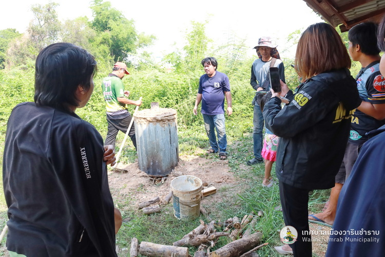 วันที่ 30 เมษายน 2568 เวลา 14.00 น. เจ้าหน้าที่กองสาธารณสุขและสิ่งแวดล้อม พร้อมด้วย เจ้าหน้าที่เทศกิจ และเจ้าหน้าที่งานนิติการ เทศบาลเมืองวารินชำราบ นำโดย นางพฤกษา ตั้งกิจวนิชกุล ผู้อำนวยการกองสาธารณสุขฯ ลงพื้นที่สาธิตการใช้งานเตาเผาถ่านไร้ควันแก่ผู้ประกอบการ ณ ศาลากลางบ้านชุมชนหาดสวนสุข เพื่อเป็นอีกหนึ่งทางเลือกแก่ผู้ประกอบการในการลดผลกระะทบจากปัญหาฝุ่นละอองขนาดเล็ก PM 2.5 ซึ่งจากการสาธิตพบว่าเตาเผาถ่านไร้ควันมีประสิทธิภาพที่ดี โดยมีควันเฉพาะในช่วง 15 นาทีแรกที่เริ่มเผา หลังจากนั้นถ้ามีการคุมไฟที่ดีจะไม่มีควันออกมา พร้อมกันนี้ยังได้รับฟังข้อคิดเห็นจากทางผู้ประกอบการเพื่อหามาตรการแนวทางในการลดปัญหาฝุ่นละอองขนาดเล็กร่วมกัน