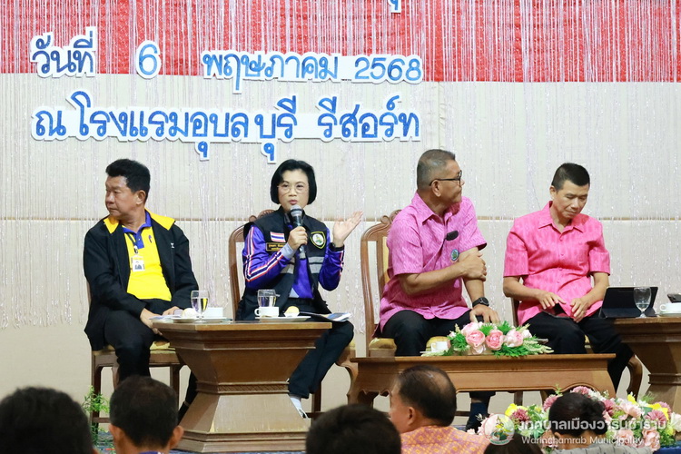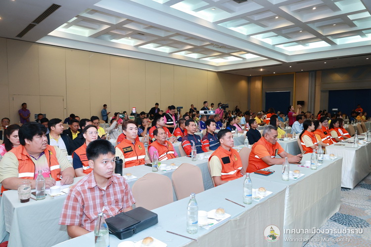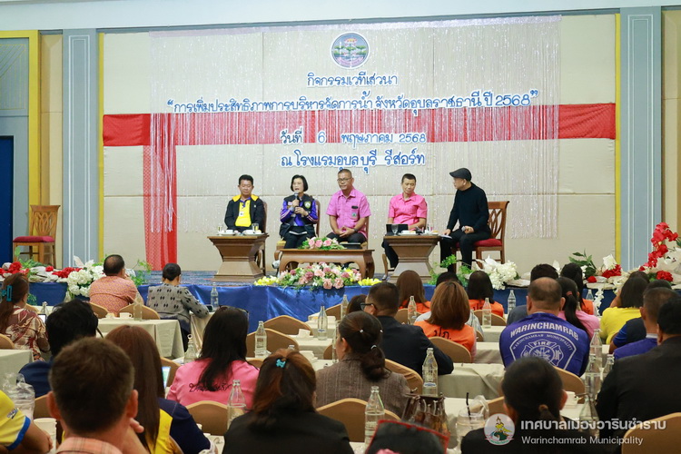 วันที่ 6 พฤษภาคม 2568 เวลา 09.30 น. ณ โรงแรมอุบลบุรีรีสอร์ท อำเภอวารินชำราบ จังหวัดอุบลราชธานี นางรุ่งนภา ทับหนองฮี รองปลัดเทศบาล รักษาราชการแทนปลัดเทศบาล ปฏิบัติหน้าที่นายกเทศมนตรีเมืองวารินชำราบ ร่วมกิจกรรมเวทีเสวนาในหัวข้อ “การเพิ่มประสิทธิภาพการบริหารจัดการน้ำจังหวัดอุบลราชธานี ปี 2568” เพื่อเตรียมการรับมือ บรรเทา และแก้ไขปัญหาน้ำท่วมและภัยแล้ง รวมถึงเพิ่มประสิทธิภาพในการบริหารจัดการน้ำให้เป็นระบบ และสร้างการรับรู้แก่ประชาชนเพื่อลดความสูญเสียในชีวิตและทรัพย์สิน การเสวนาครั้งนี้มีผู้เข้าร่วมจากภาคีเครือข่าย หน่วยงานภาครัฐ องค์กรปกครองส่วนท้องถิ่น ผู้นำชุมชน ภาคเอกชน และประชาชนจากพื้นที่เสี่ยง เพื่อให้เกิดการบูรณาการทำงานร่วมกันอย่างมีประสิทธิภาพ และสามารถรับมือกับสถานการณ์ได้