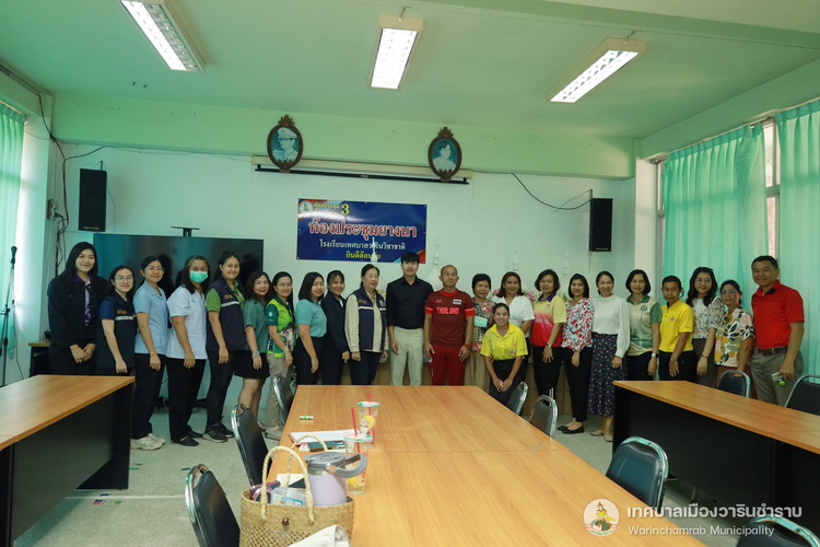 วันที่ 7 พฤษภาคม 2568 กองสาธารณสุขและสิ่งแวดล้อม เทศบาลเมืองวารินชำราบ โดย นางพฤกษา ตั้งกิจวนิชกุล ผู้อำนวยการกองสาธารณสุขฯ พร้อมด้วยนางพีระพิชญ์ รวมธรรม หัวหน้าฝ่ายบริหารงานสาธารณสุข และเจ้าหน้าที่ ได้ออกให้คำแนะนำด้านสุขาภิบาลอนามัยสิ่งแวดล้อม สุขาภิบาลอาหาร และการควบคุมโรคติดต่อ แก่โรงเรียนเทศบาลบ้านสุขสำราญ และโรงเรียนเทศบาลวารินวิชาชาติ ตามแผนการเตรียมความพร้อมด้านสุขาภิบาลอนามัยสิ่งแวดล้อม สุขาภิบาลอาหาร และการควบคุมโรคติดต่อ ก่อนเปิดภาคเรียนที่ 1 ปีการศึกษา 2568 ของสถานศึกษาในสังกัดเทศบาลเมืองวารินชำราบ โดยมีผู้อำนวยการสถานศึกษา พร้อมด้วย รองผู้อำนวยการสถานศึกษา และครูอนามัย เข้ารับการให้คำแนะนำในครั้งนี้