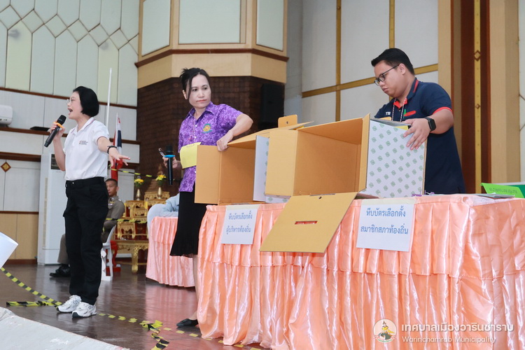 วันที่ 8 พฤษภาคม 2568 เวลา 09.00 น. ณ หอประชุมประชาวาริน กองยุทธศาสตร์และงบประมาณ เทศบาลเมืองวารินชำราบ ได้จัดโครงการฝึกอบรมให้ความรู้แก่เจ้าพนักงานผู้ดำเนินการเลือกตั้ง(คณะกรรมการประจำหน่วยเลือกตั้ง เจ้าหน้าที่รักษาความปลอดภัยประจำที่เลือกตั้งและผู้ช่วยเหลือการปฏิบัติงานในการเลือกตั้ง) ในการเลือกตั้งสมาชิกสภาเทศบาลและนายกเทศมนตรีเมืองวารินชำราบ โดยได้รับเกียรติจากนายวิเศษ หิรัญเทศ คณะกรรมการการเลือกตั้ง เป็นประธานในพิธี พร้อมด้วยหัวหน้าส่วนการงาน ร่วมเป็นเกียรติในเป็นผู้กล่าวเปิดการฝึกอบรมให้ความรู้แก่เจ้าพนักงานผู้ดำเนินการเลือกตั้ง (คณะกรรมการประจำหน่วยเลือกตั้ง เจ้าหน้าที่รักษาความปลอดภัยประจำที่เลือกตั้งและผู้ช่วยเหลือการปฏิบัติงานในการเลือกตั้ง) ในการเลือกตั้งสมาชิกสภาเทศบาลและนายกเทศมนตรีเมืองวารินชำราบ เขตเลือกตั้งที่ 2 และทบทวนหน้าที่ก่อนฝึกปฏิบัติหน้าที่ในการจัดการออกเสียงลงคะแนน ซึ่งการอบรมในครั้งนี้ ได้รับเกียรติจากนางรุ่งนภา ทับหนองฮี รองปลัดเทศบาล รักษาราชการแทนปลัดเทศบาล ปฏิบัติหน้าที่นายกเทศมนตรีเมืองวารินชำราบ พร้อมด้วยจ่าเอกประกาศ ตระการไทย หัวหน้าฝ่ายป้องกันและบรรเทาสาธารณภัย และนายทรงยศ แสนทวีสุข หัวหน้าฝ่ายบริการและเผยแพร่วิชาการ มาเป็นวิทยากรบรรยายให้ความรู้ในการอบรมในครั้งนี้
