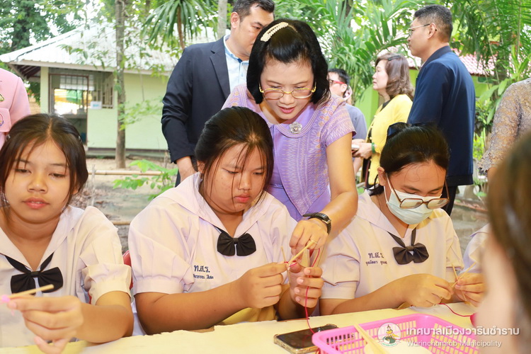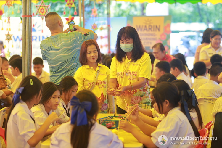 วันที่ 30 พฤษภาคม 2568 เวลา 10.00 น. ณ วัดผาสุการาม นางรุ่งนภา ทับหนองฮี รองปลัดเทศบาล รักษาราชการแทนปลัดเทศบาล ปฏิบัติหน้าที่นายกเทศมนตรีเมืองวารินชำราบ เป็นประธานในพิธีเปิดโครงการ “ฟื้นชีวิต คืนชีวา สร้างคุณค่าเมืองวาริน” พร้อมด้วย หัวหน้าส่วนราชการ คณะผู้บริหาร ตัวแทนครู และนักเรียนในสังกัดเทศบาล เข้าร่วมกิจกรรมทำธุง ทำดอกเทียน และสอนตัดผม ภายใต้โครงการ “ฟื้นชีวิต คืนชีวา สร้างคุณค่าเมืองวาริน : การออกแบบนิเวศการเรียนรู้ของย่านเมืองเก่าวารินชำราบ ด้วยซอฟต์พาวเวอร์และทุนทางวัฒนธรรม” ภายใต้กรอบการวิจัย มหาวิทยาลัยอุบลราชธานี “การยกระดับการขับเคลื่อนเมืองแห่งการเรียนรู้ (Learning City)” ประจำปีงบประมาณ 2568 โดยมีพื้นที่ดำเนินการวิจัยในเขตเทศบาลเมืองวารินชำราบ