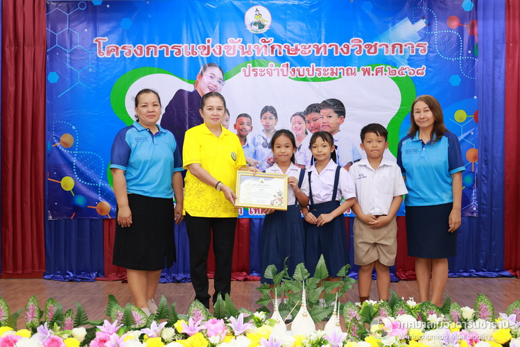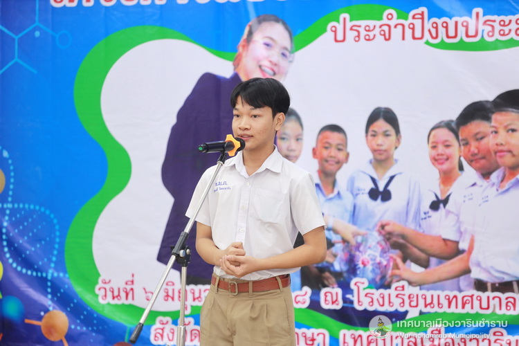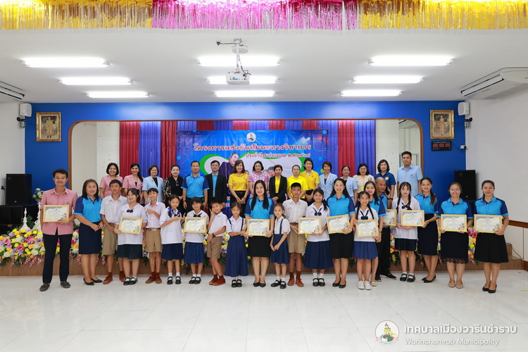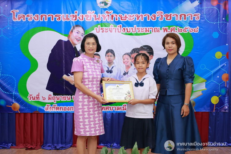 วันที่ 6 มิถุนายน 2568 ณ โรงเรียนเทศบาลวารินวิชาชาติ กองการศึกษา เทศบาลเมืองวารินชำราบ ได้จัดทำโครงการแข่งขันทักษะทางวิชาการ ประจำปี 2568 เพื่อแข่งขันคัดเลือกพนักงานครูเทศบาลสถานศึกษาในสังกัดกลุ่มสาระการเรียนรู้และกลุ่มปฐมวัยเป็นตัวแทนระดับเทศบาล เข้าร่วมการแข่งขันทักษะทางวิชาการภาคตะวันออกเฉียงเหนือ เพื่อส่งเสริมให้นักเรียนและครูได้พัฒนาศักยภาพทางวิชาการ แสดงความรู้ ความสามารถ และความคิดสร้างสรรค์ โดยนางรุ่งนภา ทับหนองฮี รองปลัดเทศบาล รักษาราชการแทนปลัดเทศบาล ปฏิบัติหน้าที่นายกเทศมนตรีเมืองวารินชำราบ เป็นประธานพร้อมได้กล่าวให้โอวาทแก่ตัวแทนนักเรียนและคณะครูเพื่อเป็นขวัญและกำลังใจ เข้าร่วมการแข่งขันทักษะวิชาการ ระดับภาคตะวันออกเฉียงเหนือที่จังหวัดร้อยเอ็ด ระหว่างวันที่ 23-25 กรกฎาคม 2568 ต่อไป