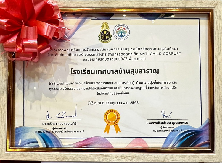วันที่ 13 มิถุนายน 2568 นางสาวสุมุทา หาญวงศ์ ผู้อำนวยการกองการศึกษา พร้อมด้วย ศึกษานิเทศก์ และเจ้าหน้าที่กองการศึกษา เทศบาลเมืองวารินชำราบ ร่วมด้วย ตัวแทนคณะครูและนักเรียนโรงเรียนเทศบาลบ้านสุขสำราญ ได้เข้าร่วมกิจกรรมถอดบทเรียนและแลกเปลี่ยนเรียนรู้การพัฒนานวัตกรรมสื่อการเรียนรู้ ภายใต้โครงการพัฒนาสื่อและนวัตกรรมสนับสนุนการเรียนรู้ตามหลักสูตร ต้านทุจริตศึกษาในระดับมัธยมศึกษา (Anti-Child Corrupt) จัดโดยสำนักงาน ป.ป.ช. ประจำจังหวัดอุบลราชธานี และศูนย์การเรียนปัญญากัลป์ เพื่อส่งเสริมความคิดสร้างสรรค์ และปลูกฝังแนวคิดคุณธรรม จริยธรรม ในวัยเรียน ณ โรงแรมสุนีย์ แกรนด์ แอนด์คอนเวนชั่นเซนเตอร์ ในการนี้ โรงเรียนเทศบาลบ้านสุขสำราญ ได้ร่วมนำเสนอผลงานสื่อนวัตกรรม "Eduflex : การเรียนรู้ปรับเปลี่ยนได้" โดยการสร้างสรรค์เพลงที่มีเนื้อหาเกี่ยวกับแนวคิดการต้านทุจริต พร้อมใส่ทำนองด้วยเครื่องมือ AI เพื่อใช้เป็นสื่อในการรณรงค์ต่อต้านการทุจริต