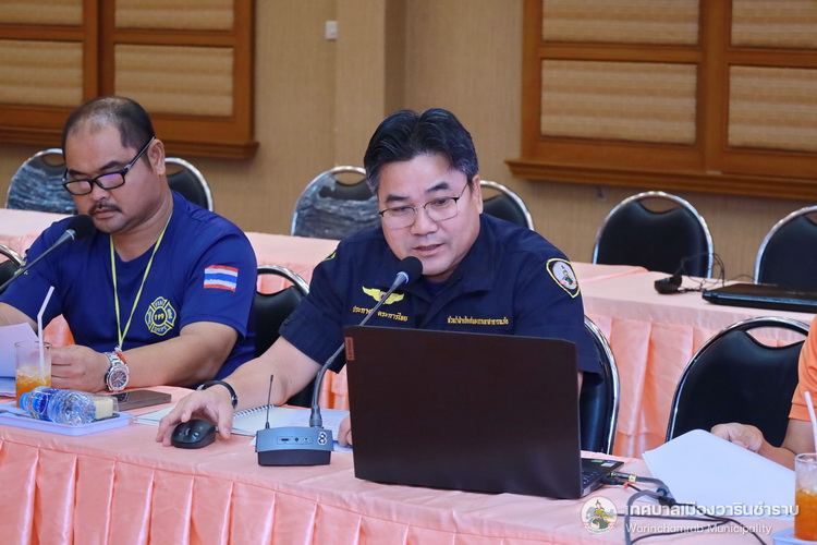 วันที่ 3 กรกฎาคม 2568 เวลา 13.30 น. ณ ห้องประชุมประทุมเทพภักดี 1 เทศบาลเมืองวารินชำราบ นางรุ่งนภา ทับหนองฮี รองปลัดเทศบาล รักษาราชการแทนปลัดเทศบาล รักษาราชการแทนนายกเทศมนตรี พร้อมด้วยหัวหน้าส่วนการงาน ได้ประชุมเตรียมการฝึกการป้องกันและบรรเทาสาธารณภัย (ด้านอุทกภัย) จังหวัดอุบลราชธานี ประจำปี 2568 โดยมีรูแบบการฝึก 2 แบบ คือ 1.ฝึกแบบบนโต๊ะ (Table Top Exercise : TTX) ในวันที่ 7 กรกฎาคม 2568 ณ ห้องประชุมสำนักงานป้องกันและบรรเทาสาธารณภัยจังหวัดอุบลราชธานี ชั้น 2 ศาลากลางจังหวัดอุบลราชธานี 2.การฝึกเฉพาะหน้าที่ (Functional Exercise : FEX) ในวันที่ 17-18 กรกฎาคม 2568 โดยใช้พื้นที่ของเทศบาลเมืองวารินชำราบ จัดตั้งศูนย์พักพิงชั่วคราววัดหาดสวนสุข และศูนย์พักพิงชั่วคราวโครงการปรับปรุงคุณภาพน้ำ เทศบาลเมืองวารินชำราบ