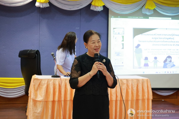วันที่ 9 กรกฎาคม 2568 เวลา 09.00 น. กองสาธารณสุขและสิ่งแวดล้อม เทศบาลเมืองวารินชำราบ นำโดย นางพฤกษา ตั้งกิจวนิชกุล ผู้อำนวยการกองสาธารณสุขและสิ่งแวดล้อม ได้จัดการประชุมโครงการส่งเสริมการตั้งครรภ์และเกิดคุณภาพ อำเภอวารินชำราบ ประจำปี 2568 จัดกิจกรรมที่ 1 อบรมให้ความรู้เกี่ยวกับสุขภาพหญิงวัยเจริญพันธุ์ เป็นโครงการที่จัดขึ้นเพื่อให้ความรู้และทักษะที่จำเป็นแก่ผู้หญิงในช่วงวัยเจริญพันธุ์ เพื่อส่งเสริมสุขภาพที่ดีและการเตรียมความพร้อมสำหรับการตั้งครรภ์และการดูแลตนเองและทารกในครรภ์. โครงการเหล่านี้มักครอบคลุมหัวข้อต่างๆ เช่น การดูแลสุขภาพก่อนการตั้งครรภ์, การฝากครรภ์, การดูแลตนเองระหว่างตั้งครรภ์, โภชนาการ, การเตรียมความพร้อมสำหรับการคลอด, และการดูแลหลังคลอด