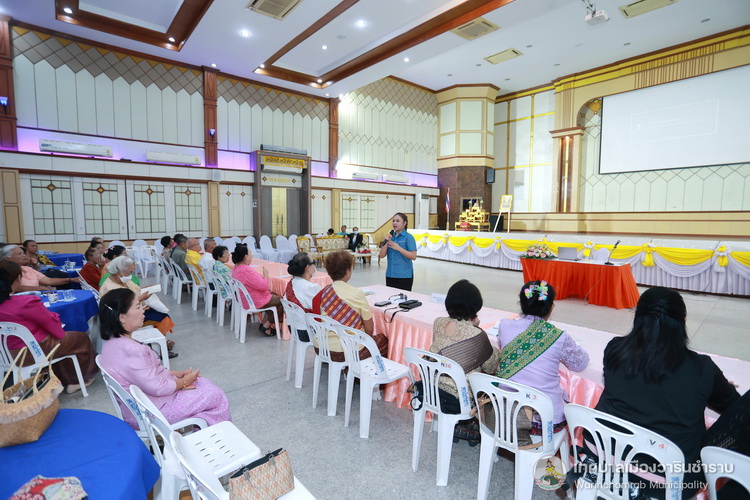 วันที่ 17 กรกฎาคม 2568 เวลา 09.00 น. กองสาธารณสุขและสิ่งแวดล้อม เทศบาลเมืองวารินชำราบ ได้จัดการอบรมโครงการส่งเสริมสุขภาพผู้สูงวัย ชะลอสูงวัย ชีวายืนยาว ประจำปี 2568 โดยมีนายจีระชัย ไกรกังวาร นายกเทศมนตรี เป็นประธานในพิธีเปิดโครงการ ฯ พร้อมด้วยสมาชิกสภาเทศบาล และหัวหน้าส่วนราชการ ณ หอประชุมประชาวาริน ซึ่งการอบรมในครั้งนี้ เป็นการส่งเสริมความรู้ให้แก่ตัวแทนผู้สูงอายุในชุมชนทั้ง 28 ชุมชน และกิจกรรมนันทนาการ แลกเปลี่ยนเรียนรู้ซึ่งกันและกัน โดยได้รับเกียรติจาก นางวรรณภา อินต๊ะราชา ตำแหน่ง พยาบาลวิชาชีพชำนาญการ จากศูนย์อนามัยที่ 10 อุบลราชธานี และนางสาวเดือนธิดา ศรีเสมอ ตำแหน่ง พยาบาลวิชาชีพชำนาญการ จากศูนย์อนามัยที่ 10 อุบลราชธานีแก่เข้ารับการอบรมครั้งนี้