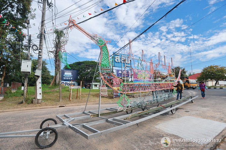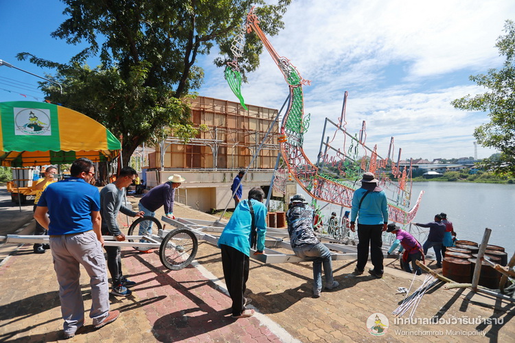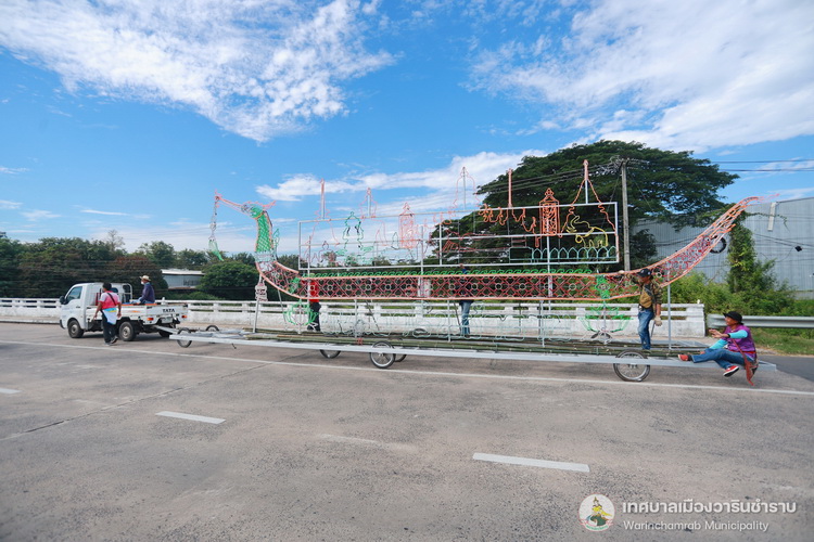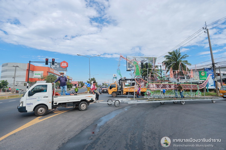 วันที่ 13 พฤศจิกายน 2567 เวลา 10.00 น. บริเวณสวนสาธารณะกุดปลาขาว นางรุ่งนภา ทับหนองฮี หัวหน้าสำนักปลัดเทศบาล รักษาราชการแทนปลัดเทศบาล หัวหน้าส่วนราชการ ลงพื้นที่ตรวจเยี่ยมการปฏิบัติหน้าที่ และบวงสรวงเรือประดับไฟรูป “เรือสุพรรณหงส์” ในงานประเพณีวันลอยกระทง ประจำปี 2567 (ขึ้น 15 ค่ำ เดือน 12) ตรงกับวันศุกร์ที่ 15 พฤศจิกายน 2567 เพื่อสนับสนุนการท่องเที่ยวของเทศบาลเมืองวารินชำราบ และดึงดูดนักท่องเที่ยวทั้งชาวไทยและชาวต่างชาติให้มาเที่ยวชมวัฒนธรรมประเพณีของไทยที่สืบทอดกันมายาวนาน