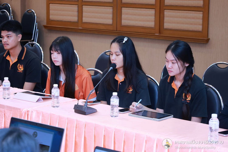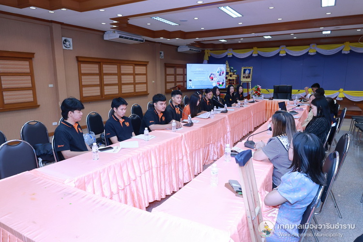วันที่ 17 กรกฎาคม 2568 เวลา 14.00 น. นางพฤกษา ตั้งกิจวนิชกุล ผู้อำนวยการกองสาธารณสุขและสิ่งแวดล้อม พร้อมด้วยเจ้าหน้าที่ที่เกี่ยวข้อง ได้เข้าให้ข้อมูลแก่ นักศึกษาชั้นปีที่ 4 คณะรัฐศาสตร์ มหาวิทยาลัยอุบลราชธานี ในเรื่องยโยบายและการบริหารจัดการสาธารณะของเทศบาลเมืองวารินชำราบ เพื่อเป็นการแลกเปลี่ยนความคิดเห็นและข้อเสนอแนะในการสำรวจและวิเคราะห์ประเด็นเกี่ยวกับกิจการสาธารณะ ซึ่งเป็นส่วนหนึ่งของการศึกษาในรายวิชาสัมมนารัฐประศาสนศาสตร์ ณ ห้องประชุมประทุมเทพภักดี 1 เทศบาลเมืองวารินชำราบ