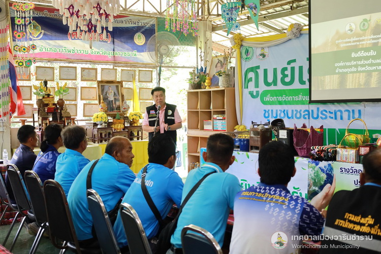 วันที่ 18 กรกฎาคม 2568 เวลา 13.30 น. ณ ศูนย์เรียนรู้เพื่อการจัดการสิ่งแวดล้อมอย่างยั่งยืน ชุมชนชลประทาน ผศ.ดร.อนุชา เพียรชนะ ผู้จัดการศูนย์ถ่ายทอดเทคโนโลยีโครงการศึกษาวิจัยและพัฒนาสิ่งแวดล้อมแหลมผักเบี้ย ภาคตะวันออกเฉียงเหนือ พร้อมด้วยนายประสิทธิ์ สุทธิพันธุ์ ประธานชุมชนชลประทาน และคณะทำงานศูนย์การเรียนรู้ฯ ชุมชนชลประทาน ให้การต้อนรับคณะผู้บริหาร สมาชิกสภาองค์การบริหารส่วนตำบล หัวหน้าส่วนราชการ และพนักงาน จากองค์การบริหารส่วนตำบลเลิงแฝก อำเภอกุดรัง จังหวัดมหาสารคาม นำโดย นายโชคชัย แก้วไชย นายกองค์การบริหารส่วนตำบลเลิงแฝก ในการศึกษาดูงานด้านการบริหารจัดการขยะภายในชุมชนของชุมชนชลประทาน ซึ่งเป็นชุมชนต้นแบบในเขตเทศบาลเมืองวารินชำราบที่ประสบความสำเร็จในการลดปริมาณขยะภายในชุมชน ภายใต้การทำกิจกรรมโครงการชุมชนปลอดขยะ Zero Waste ด้วยการนำขยะมารีไซเคิลผลิตเป็นสิ่งของเครื่องใช้ต่างๆ อาทิ ถังขยะลดโลกร้อน,ไม้กวาดจากขวดพลาสติก, เสื่อจากถุงพลาสติก, ผ้ากันเปื้อนจากป้ายไวนิล, เตาชีวมวลจากหม้อหุงข้าวที่ไม่ใช้แล้ว เป็นต้น
