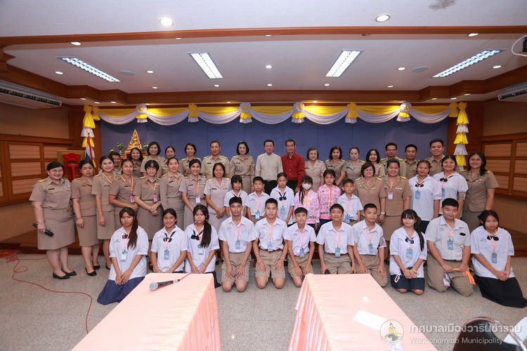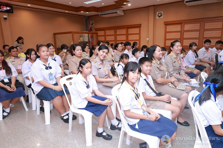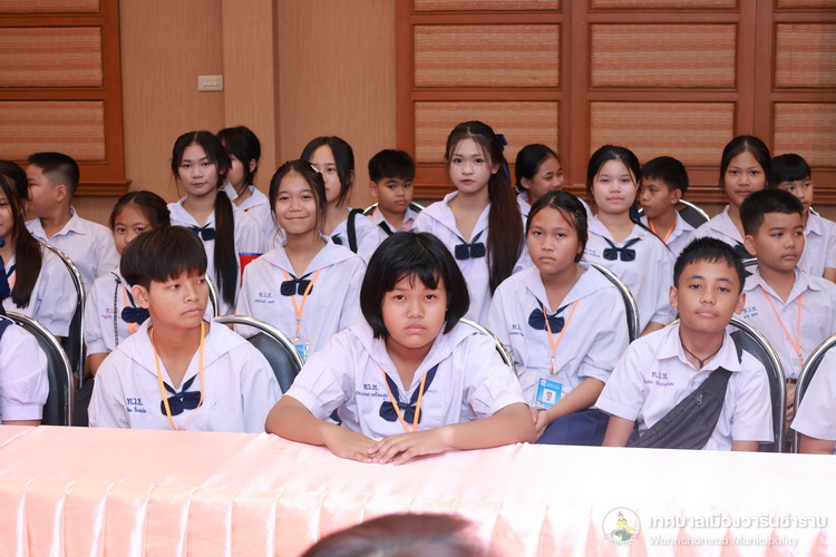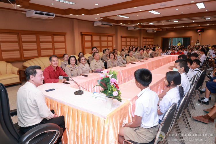 วันที่ 21 กรกฎาคม 2568 เวลา 14.00 น. ณ ห้องประชุมประทุมเทพภักดี 1 เทศบาลเมืองวารินชำราบ คณะผู้บริหารสถานศึกษา และครูผู้ฝึกสอน ได้นำนักเรียนจากโรงเรียนในสังกัดเทศบาลเมืองวารินชำราบ เข้าพบและรับฟังโอวาทจากนายจีระชัย ไกรกังวาร นายกเทศมนตรีเมืองวารินชำราบ เนื่องในโอกาสที่นักเรียนจะเดินทางไปร่วมการแข่งขันทักษะทางวิชาการและงานมหกรรมการศึกษาท้องถิ่น ระดับภาคตะวันออกเฉียงเหนือ ครั้งที่ 30 ประจำปี 2568 ที่จังหวัดร้อยเอ็ด ในระหว่างวันที่ 22 - 25 กรกฎาคม 2568 เพื่อเป็นขวัญและกำลังใจในการทำหน้าที่ตัวแทนของเทศบาลเมืองวารินชำราบให้เต็มความสามารถ