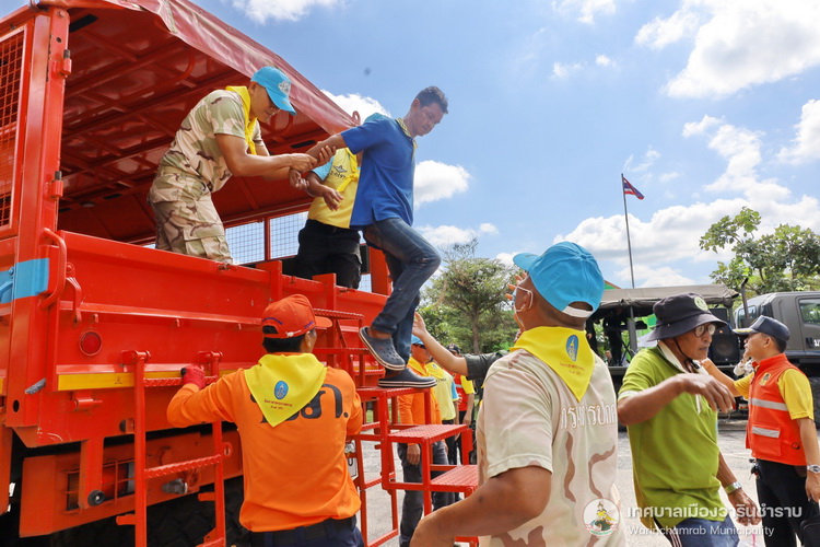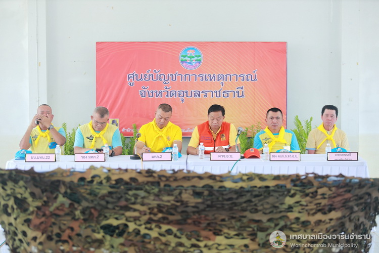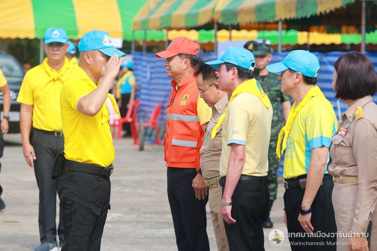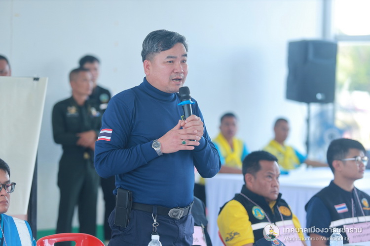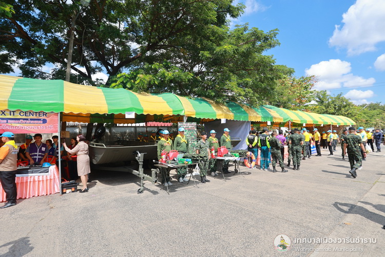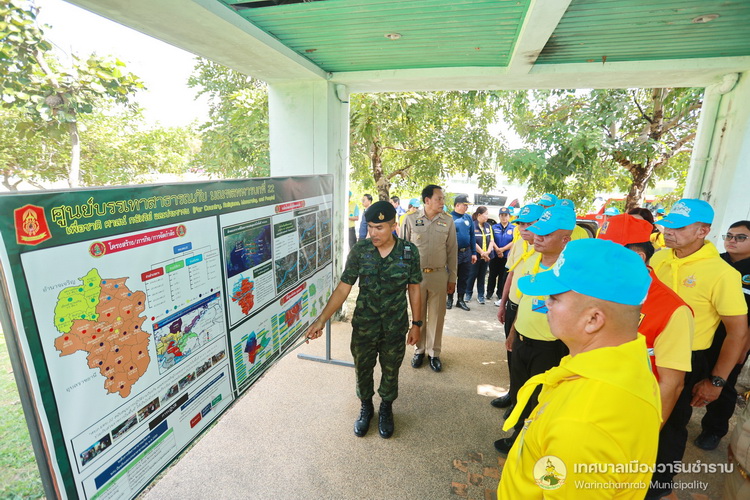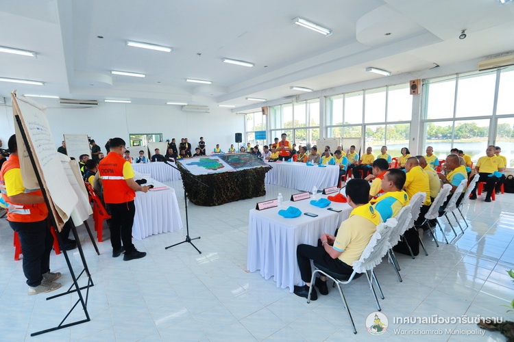 วันที่ 14 พฤศจิกายน 2567 เวลา 09.00 น. ณ โครงการปรับปรุงคุณภาพน้ำ เทศบาลเมืองวารินชำราบ นำโดยนายจีระชัย ไกรกังวาร นายกเทศมนตรีเมืองวารินชำราบ พร้อมด้วย รองนายกเทศมนตรี หัวหน้าส่วนการงาน และเจ้าหน้าที่เทศบาลเมืองวารินชำราบ ร่วมให้การต้อนรับ พล.ท.บุญสิน พาดกลาง แม่ทัพภาคที่ 2 ในฐานะผู้อำนวยการศูนย์จิตอาสาพระราชทาน ภาค 2 ในการตรวจเยี่ยมและร่วมฝึกซ้อมการป้องกันและบรรเทาสาธารณภัย แบบบูรณาการระดับจังหวัด กรณีอุทกภัย โดยมีส่วนราชการระดับจังหวัด มณฑลทหารบกที่ 22 ส่วนท้องถิ่น และภาคีเครือข่ายร่วมฝึกซ้อมในสถานการณ์ต่างๆ ที่อาจจะเกิดขึ้นได้ ทั้งส่วนของการป้องกันก่อนเกิดอุทกภัย การเตรียมความพร้อมในการรับมือและรองรับสถานการณ์ รวมถึงการเผชิญเหตุในการช่วยเหลืออพยพประชาชน ให้มีความปลอดภัยทั้งผู้ที่เข้าช่วยเหลือและผู้ขอรับความช่วยเหลือ ไม่ให้เกิดความเสียหายในชีวิตและทรัพย์สิน นอกจากนี้ ได้เตรียมความพร้อมในการจัดกำลังของจิตอาสาฯ ในประเภทต่างๆ ตามความสามารถ ความเหมาะสม ความเชี่ยวชาญ เพื่อร่วมปฏิบัติการป้องกันและบรรเทาสาธารณภัยอีกด้วย ทั้งนี้ คณะสังเกตการณ์ได้เยี่ยมชมการจัดการศูนย์พักพิง กรณีเกิดอุทกภัย ตั้งแต่การลงทะเบียนรับผู้ประสบภัยเข้าสู่ศูนย์ การให้ความช่วยเหลือในด้านต่างๆ การปฐมพยาบาลเบื้องต้น บริการตัดผม บริการน้ำดื่มสะอาด โรงครัวพระราชทาน เครื่องมือเครื่องจักรที่ใช้ในการเข้าช่วยเหลือผู้ประสบภัย การแสดงดนตรีเพื่อผ่อนคลายความเครียดในศูนย์พักพิงแก่ผู้ประสบภัย ตลอดจนให้ความช่วยเหลือซ่อมแซมรถจักรยานยนต์ เครื่องใช้ไฟฟ้า การฟื้นฟูสภาพบ้านเรือนภายหลังเหตุอุทกภัย โดยแม่ทัพภาคที่ 2 ได้กล่าวชื่นชมความสำเร็จในการบริหารจัดการภัยพิบัติของจังหวัดอุบลราชธานี ซึ่งมีการเตรียมความพร้อมเป็นอย่างดีอีกด้วย