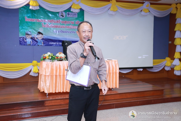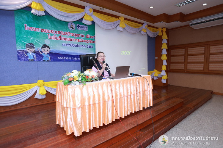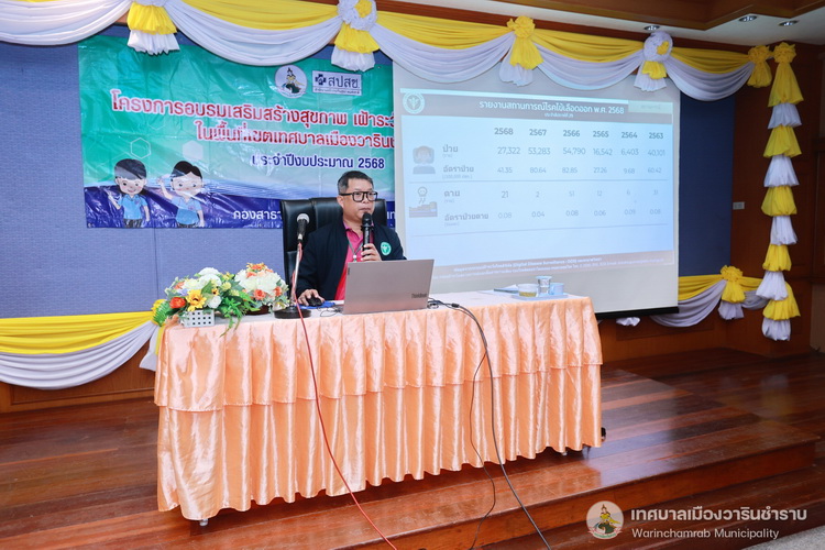 วันที่ 26 สิงหาคม 2568 เวลา 09.00 น. ณ ห้องประชุมประทุมเทพภักดี 1 งานศูนย์บริการสาธารณสุข กองสาธารณสุขและสิ่งแวดล้อม ได้จัดโครงการอบรมเสริมสร้างสุขภาพ เฝ้าระวังและป้องกันโรค ในพื้นที่เทศบาลเมืองวารินชำราบ แก่อาสาสมัครสาธารณสุข (อสม.) เทศบาลเมืองวารินชำราบ และประชาชนทั่วไป ประจำเดือนสิงหาคม 2568 เพื่อเป็นการให้ความรู้ในด้านการสาธารณสุข และทบทวนความรู้ด้านการส่งเสริมสุขภาพแก่คนในชุมชน รวมถึงการติดตามงานของ อสม. แต่ละชุมชน ในรอบเดือนที่ผ่านมา สำหรับการอบรมในครั้งนี้เป็นการให้ความรู้ในเรื่องของโรคติดต่อจากสัตว์สู่คน โดยได้รับเกียรติจากนายวุฒิจักร แก้วมาคูณ ตำแหน่งเจ้าพนักงานสาธารณสุขชำนาญงาน มาเป็นวิทยากรให้ความรู้ในครั้งนี้
