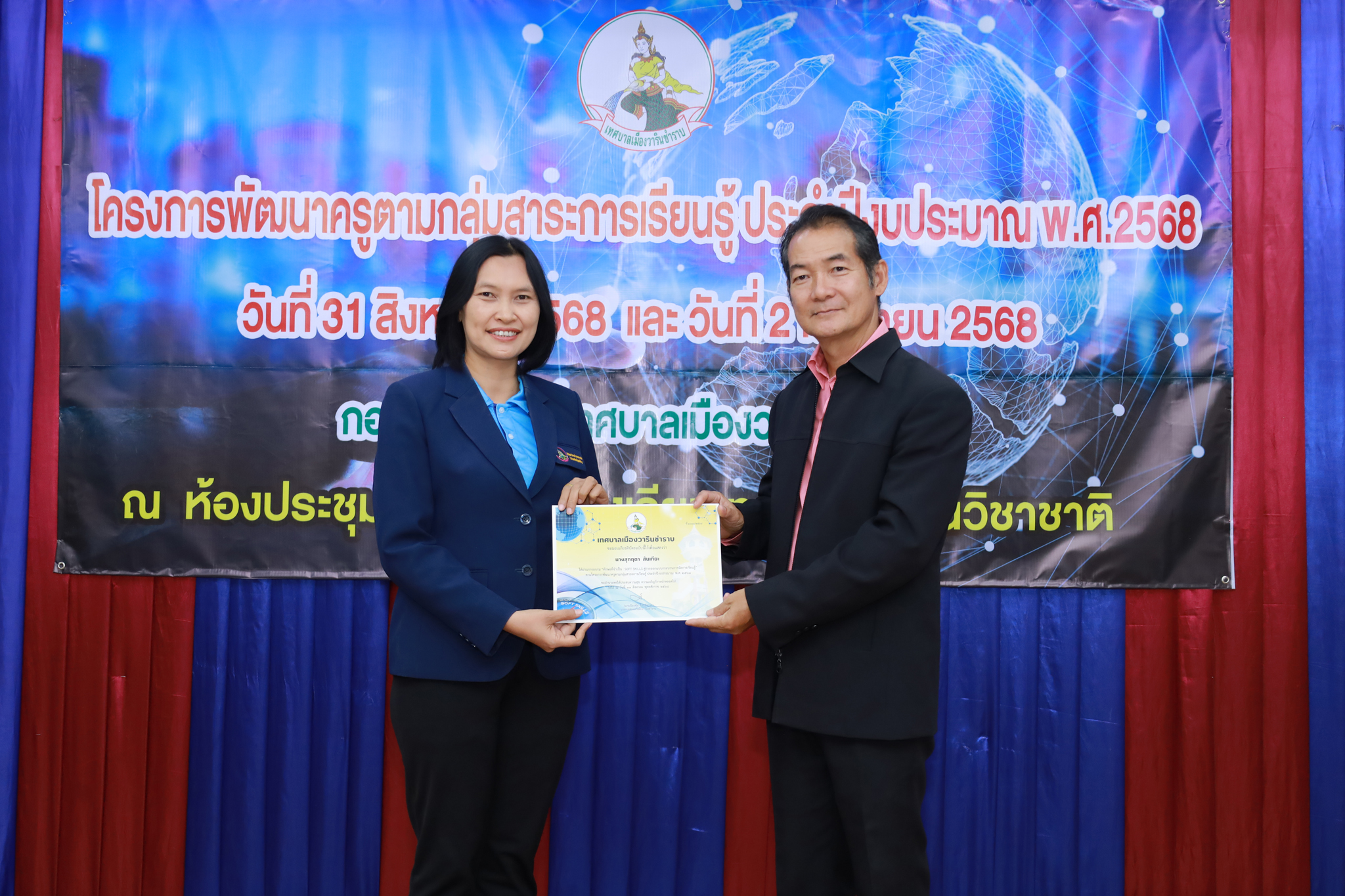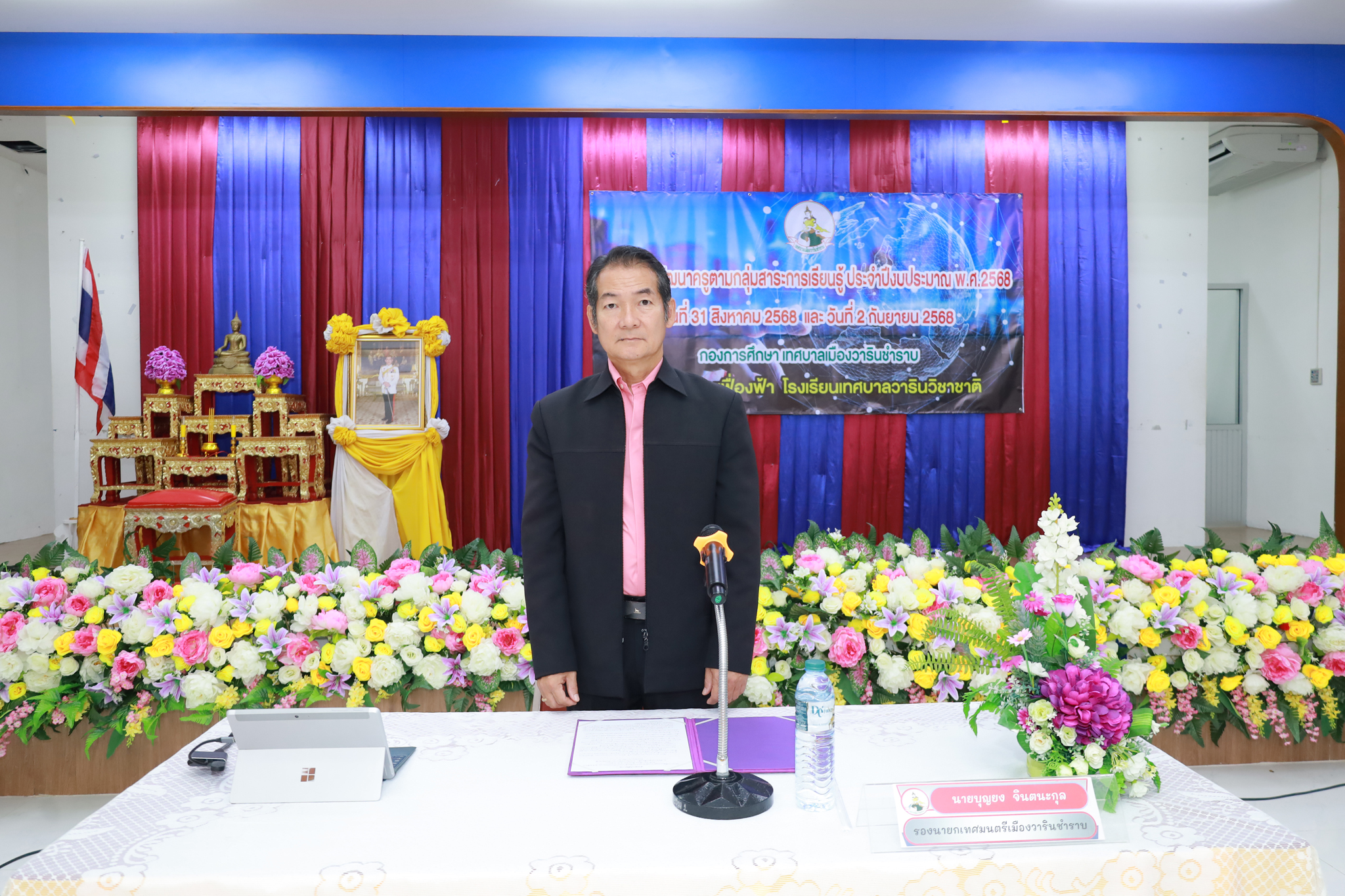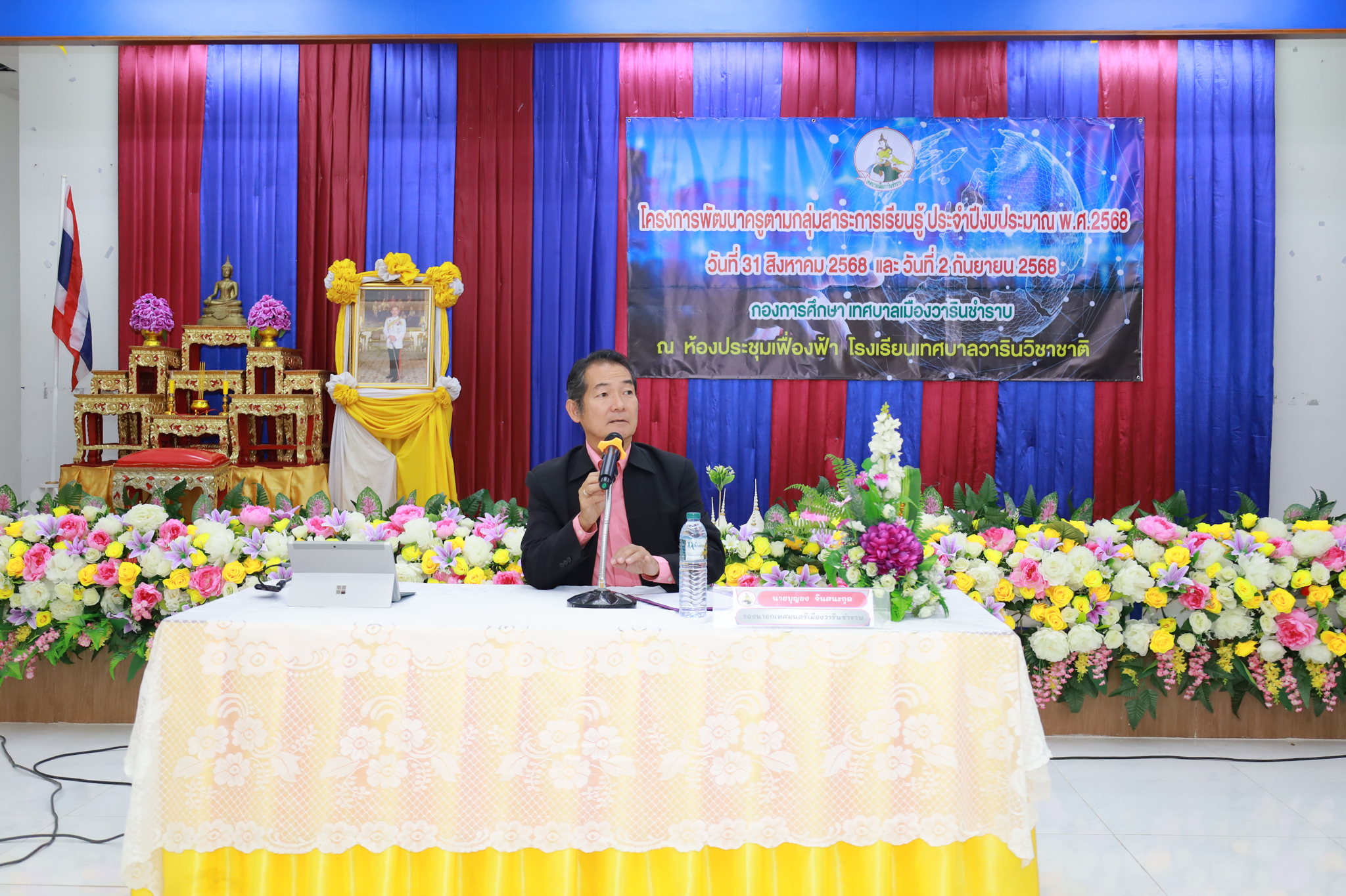 วันที่ 31 สิงหาคม 2568 เวลา 09.00 น. ณ ห้องประชุมเฟื่องฟ้า โรงเรียนเทศบาลวารินวิชาชาติ กองการศึกษา เทศบาลเมืองวารินชำราบ ได้จัดโครงการพัฒนาครูตามกลุ่มสาระการเรียนรู้ ประจำปีงบประมาณ พ.ศ. 2568 โดยมีนายบุญยง จินตนะกุล รองนายกเทศมนตรี เป็นประธานในพิธีเปิดการฝึกอบรม โดยมีนางสาวสุมุนทา หาญวงศ์ ผู้อำนวยการกองการศึกษา เป็นผู้กล่าวรายงาน พร้อมด้วย ผู้อำนวยการสถานศึกษา โรงเรียนในสังกัดเทศบาลทั้ง 3 แห่ง ร่วมเป็นเกียรติในพิธีเปิด สำหรับการฝึกอบรม ในครั้งนี้ มีวัตถุประสงค์เพื่อพัฒนาพนักงานครูและบุคลากรทางการศึกษาที่ได้จัดการสอน ระดับประถมศึกษาปีที่ 1 ถึงชั้นมัธยมศึกษาปีที่ 3 ให้มทักษะที่จำเป็น สู่การออกแบบกระบวนการจัดการเรียนรู้ พัฒนาทักษะ Soft Skils ด้านการเรียนรู้และนวัตกรรม การคิดแก้ไขปัญหาอย่างเป็นระบบผ่านการเรียนรู้ Steam Education เพื่อสร้างชิ้นงานนวัตกรรมและเทคโนโลยี