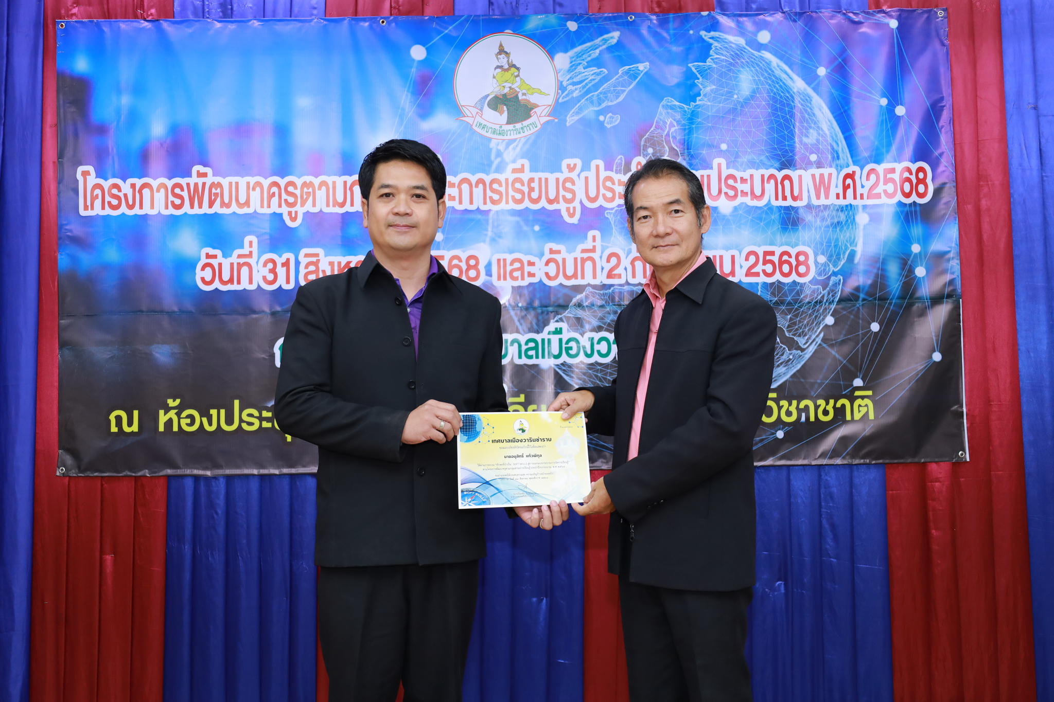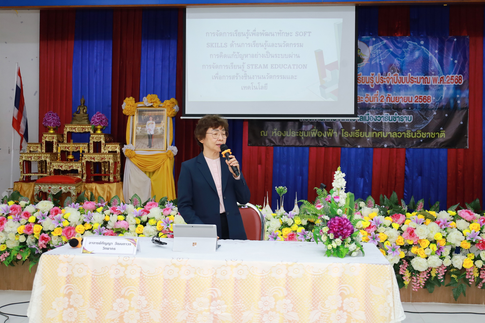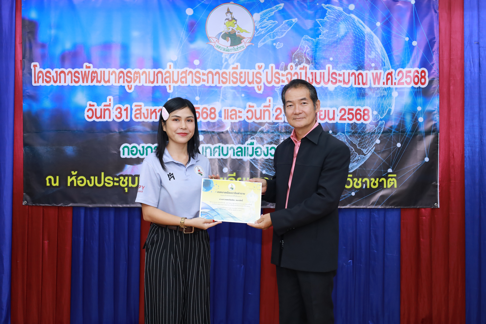 วันที่ 31 สิงหาคม 2568 เวลา 09.00 น. ณ ห้องประชุมเฟื่องฟ้า โรงเรียนเทศบาลวารินวิชาชาติ กองการศึกษา เทศบาลเมืองวารินชำราบ ได้จัดโครงการพัฒนาครูตามกลุ่มสาระการเรียนรู้ ประจำปีงบประมาณ พ.ศ. 2568 โดยมีนายบุญยง จินตนะกุล รองนายกเทศมนตรี เป็นประธานในพิธีเปิดการฝึกอบรม โดยมีนางสาวสุมุนทา หาญวงศ์ ผู้อำนวยการกองการศึกษา เป็นผู้กล่าวรายงาน พร้อมด้วย ผู้อำนวยการสถานศึกษา โรงเรียนในสังกัดเทศบาลทั้ง 3 แห่ง ร่วมเป็นเกียรติในพิธีเปิด สำหรับการฝึกอบรม ในครั้งนี้ มีวัตถุประสงค์เพื่อพัฒนาพนักงานครูและบุคลากรทางการศึกษาที่ได้จัดการสอน ระดับประถมศึกษาปีที่ 1 ถึงชั้นมัธยมศึกษาปีที่ 3 ให้มทักษะที่จำเป็น สู่การออกแบบกระบวนการจัดการเรียนรู้ พัฒนาทักษะ Soft Skils ด้านการเรียนรู้และนวัตกรรม การคิดแก้ไขปัญหาอย่างเป็นระบบผ่านการเรียนรู้ Steam Education เพื่อสร้างชิ้นงานนวัตกรรมและเทคโนโลยี
