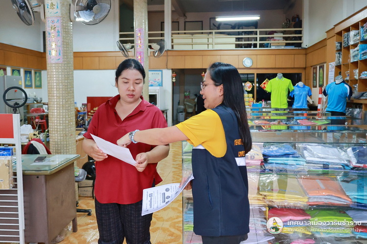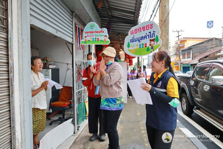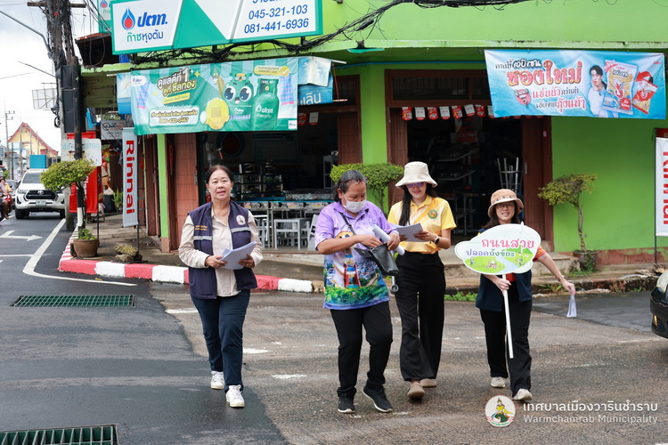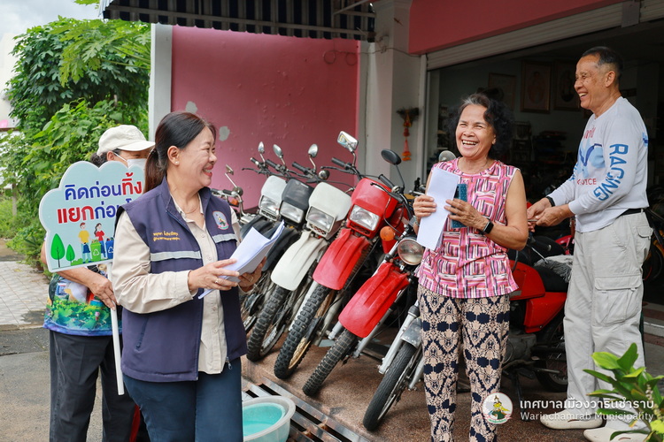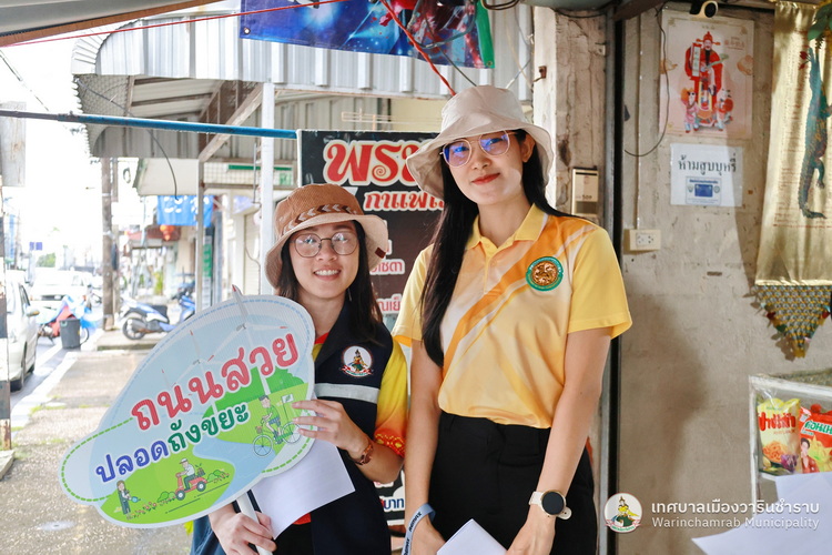 วันที่ 8 กันยายน 2568 เวลา 15.00 น. นางพฤกษา ตั้งกิจวนิชกุล ผู้อำนวยการกองสาธาณณสุขและสิ่งแวดล้อม นำเจ้าหน้าที่กองสาธารณสุขฯ และสมาชิกอาสาสมัครท้องถิ่นรักษ์โลก (อถล.) เทศบาลเมืองวารินชำราบ ลงพื้นที่ประชาสัมพันธ์โครงการถนนปลอดถังขยะ แบบเคาะประตูบ้าน ในพื้นที่นำร่องโครงการฯ ได้แก่ ถนนสถิตย์นิมานกาล และถนนกันทรลักษ์ เพื่อเป็นการประชาสัมพันธ์ชี้แจงให้ประชาชนที่อาศัย หรือประกอบกิจการในบริเวณดังกล่าวได้รับทราบถึงวัตถุประสงค์ของโครงการฯ รวมถึงเพื่อสร้างความเข้าใจแก่ประชาชนในขั้นตอนการทิ้งขยะ และการจัดเก็บขยะของเทศบาล