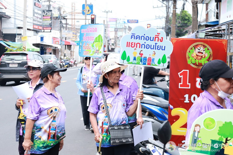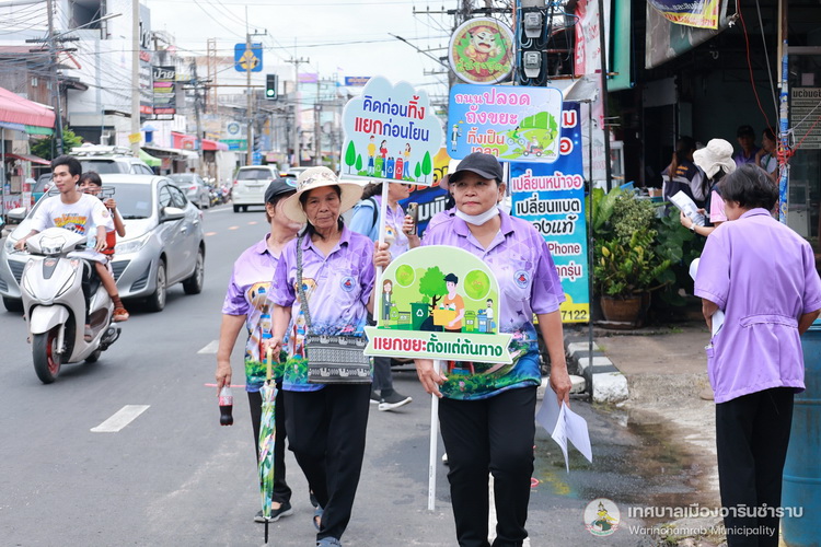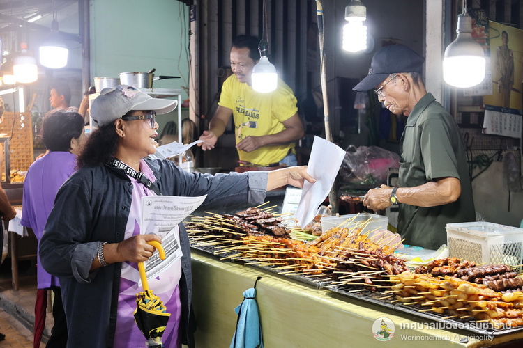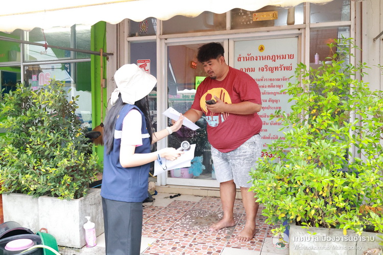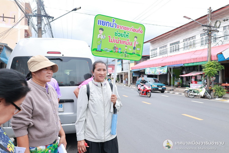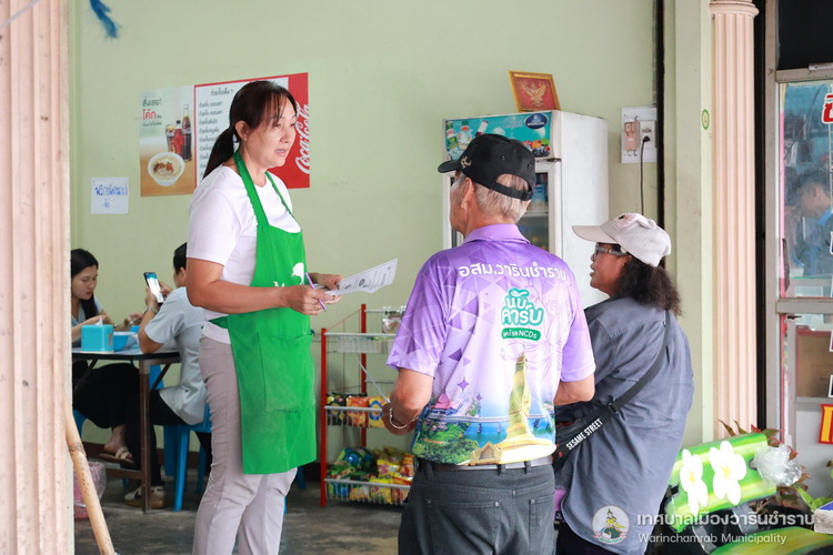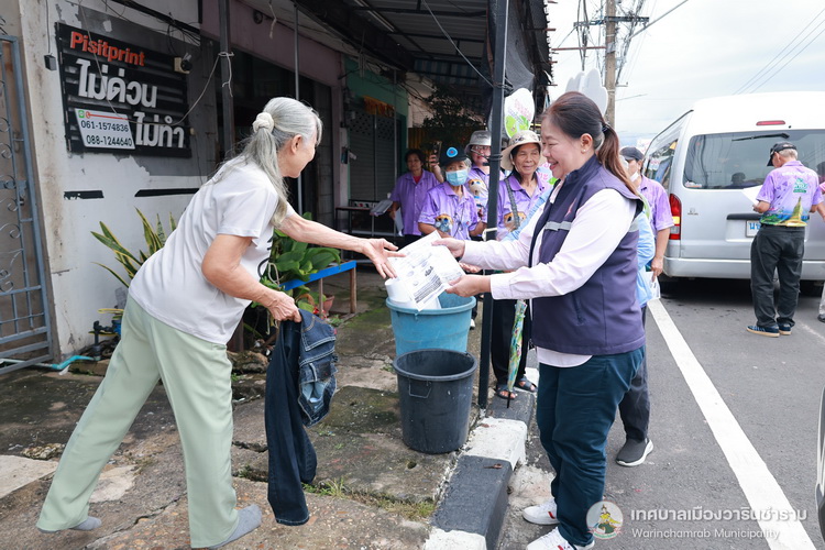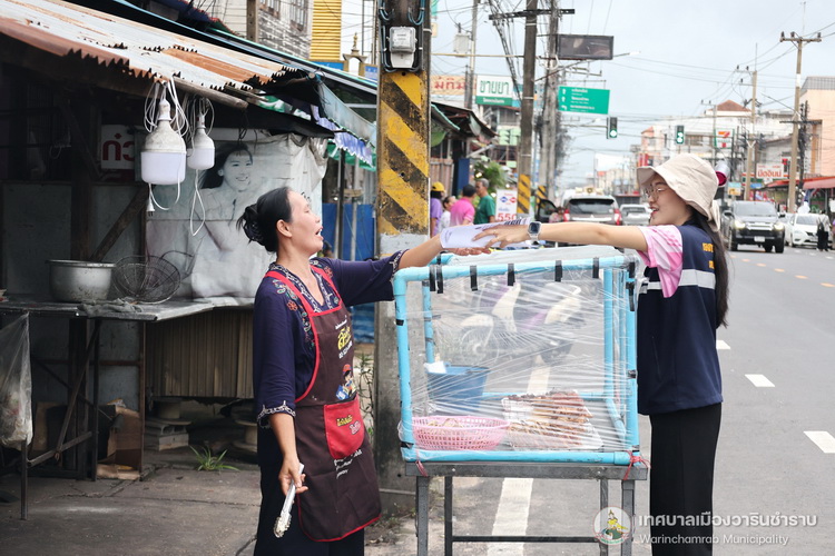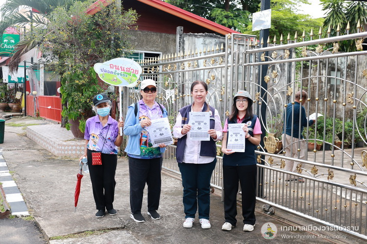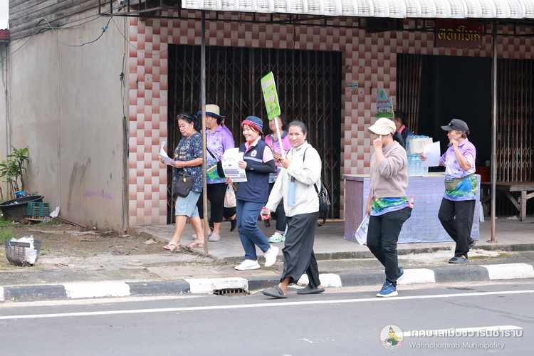 วันที่ 9 กันยายน 2568 เวลา 15.00 น. นางพฤกษา ตั้งกิจวนิชกุล ผู้อำนวยการกองสาธาณณสุขและสิ่งแวดล้อม นำเจ้าหน้าที่กองสาธารณสุขฯ และสมาชิกอาสาสมัครท้องถิ่นรักษ์โลก (อถล.) เทศบาลเมืองวารินชำราบ ลงพื้นที่ประชาสัมพันธ์โครงการถนนปลอดถังขยะ แบบเคาะประตูบ้าน วันที่ 2 ในพื้นที่นำร่องโครงการฯ ได้แก่ ถนนสถิตย์นิมานกาล และถนนกันทรลักษ์ เพื่อเป็นการประชาสัมพันธ์ชี้แจงให้ประชาชนที่อาศัย หรือประกอบกิจการในบริเวณดังกล่าวได้รับทราบถึงวัตถุประสงค์ของโครงการฯ รวมถึงเพื่อสร้างความเข้าใจแก่ประชาชนในขั้นตอนการทิ้งขยะ และการจัดเก็บขยะของเทศบาล